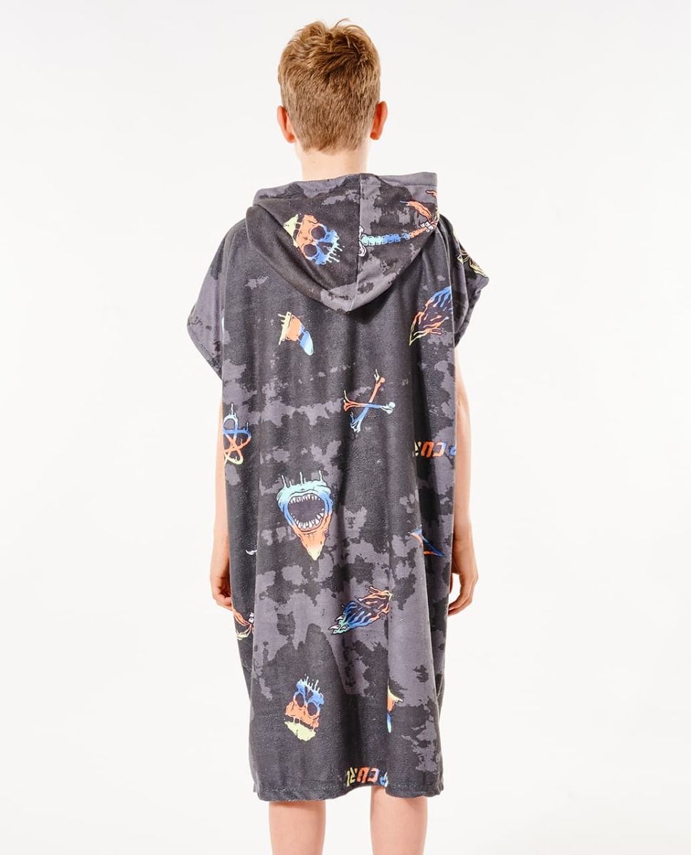 Poncho para surf Rip Curl Printed Hooded Towel en color negro (Washed Black) para niño
