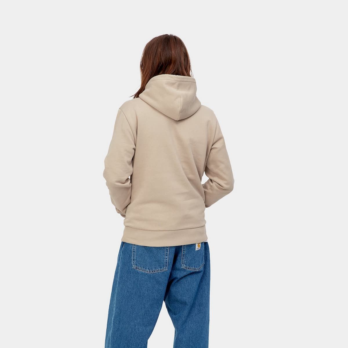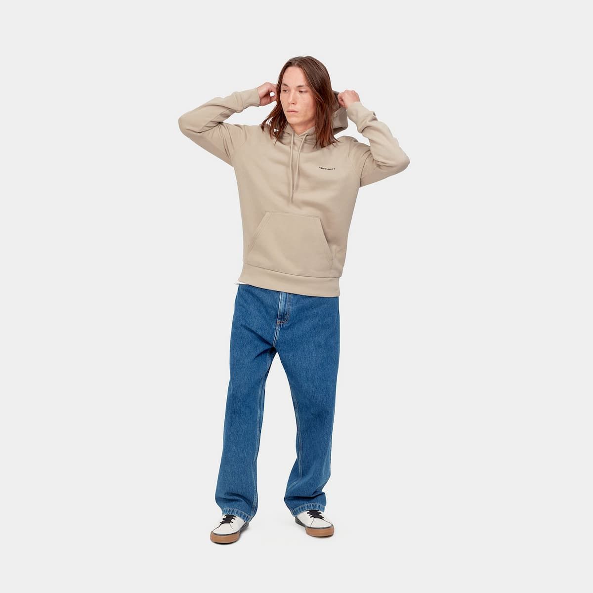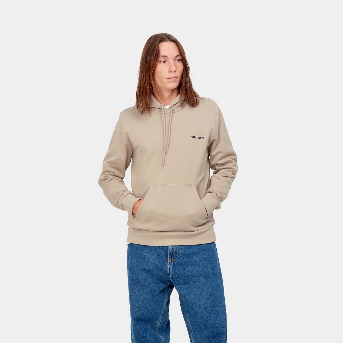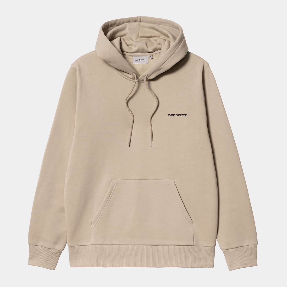 La Hooded Script Embroidery Sweatshirt de Carhartt WIP está disponible en color beige con el logo de Carhartt en negro (Wall-Black).