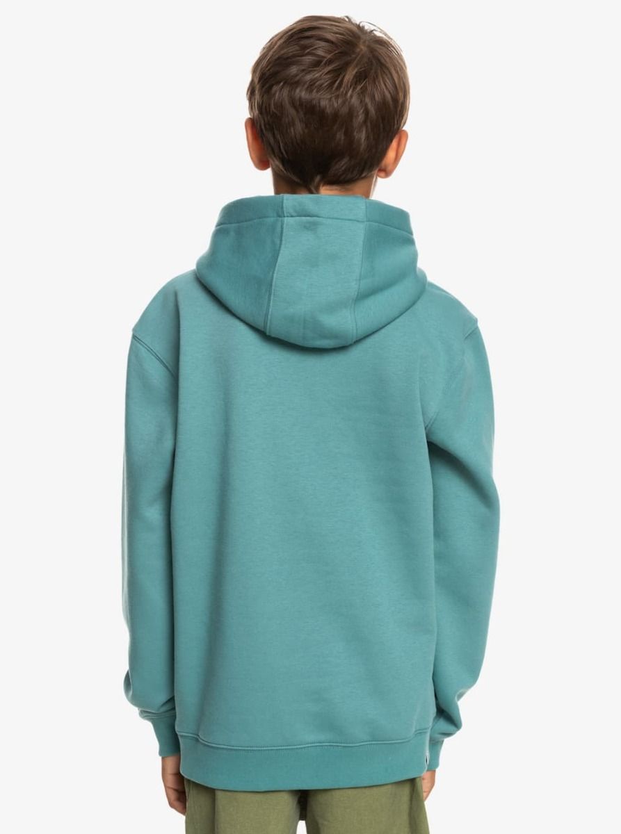 Este hoodie de corte clásico cuenta con capucha con abertura cruzada, punto canalé en puños y dobladillo inferior, un amplio bolsillo tipo canguro, el logo de Quiksilver estampado en el pecho y una discreta etiqueta de tela con el logo de la marca tejida en el dobladillo.