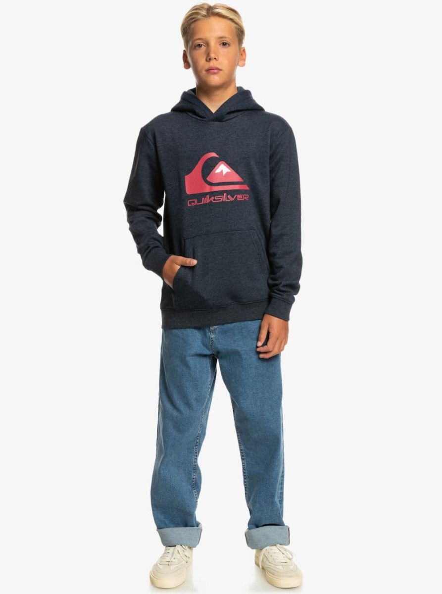 La sudadera con capucha para niños de entre 8 y 16 años Big Logo Youth en azul marino (Navy Blazer Heather) de Quiksilver está confeccionada con tejido en mezcla de 55% algodón y 45% poliéster (280g/m2).