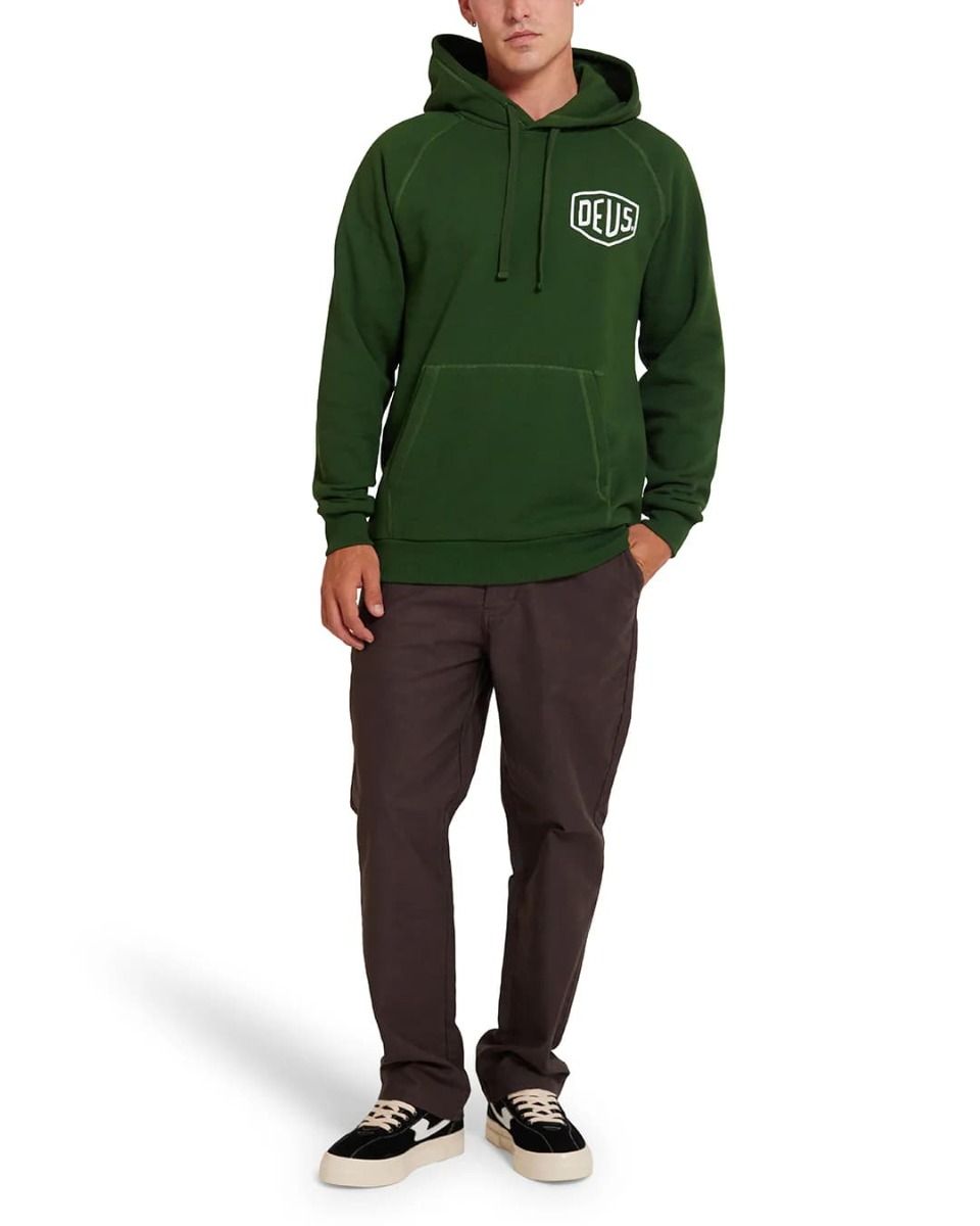 La sudadera con capucha para hombre Biarritz Address Hoodie en verde (Hillside Green) de Deus Ex Machina está confeccionada con tejido de algodón orgánico cepillado (350g).