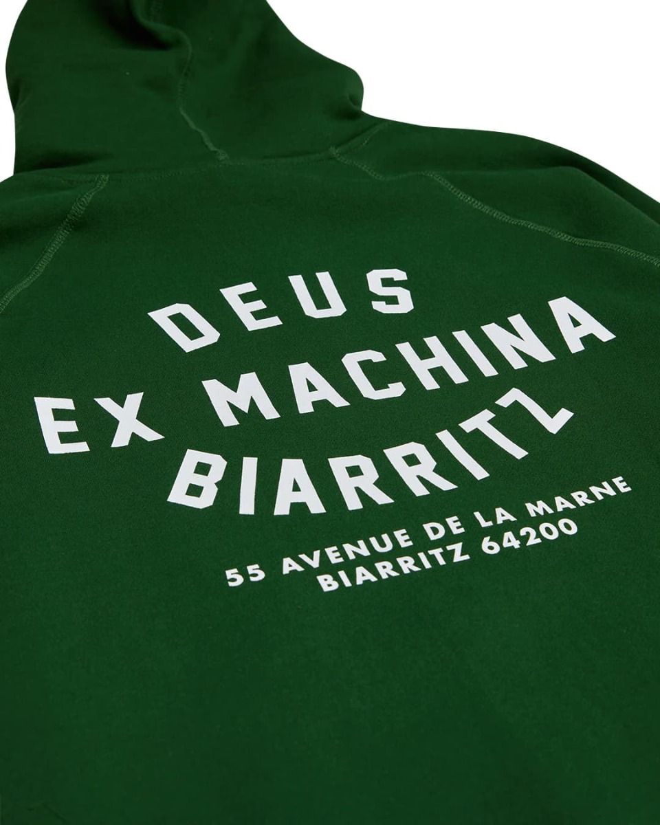 La sudadera con capucha Biarritz Address Verde de Deus Ex Machina es un clásico que no puede faltar en tu colección.