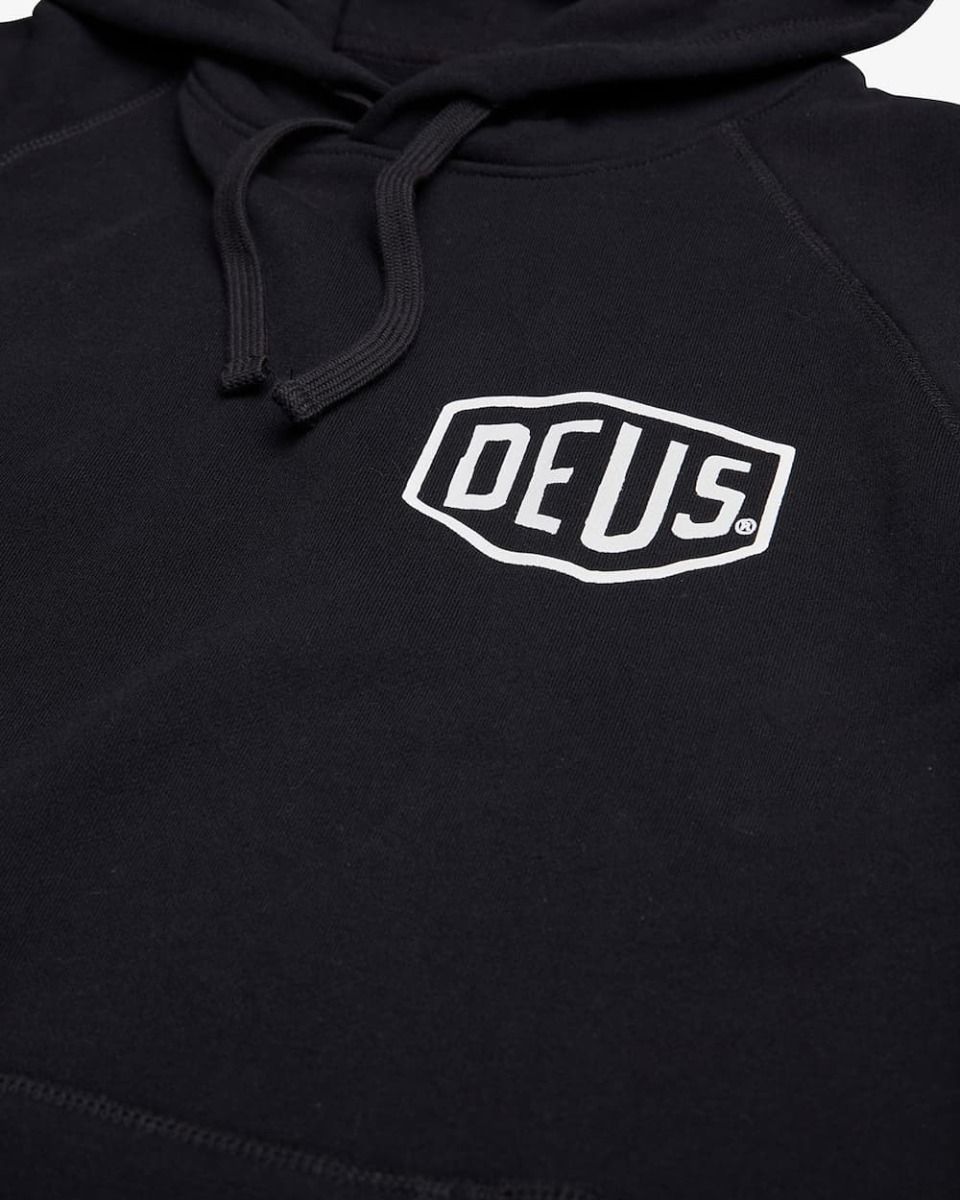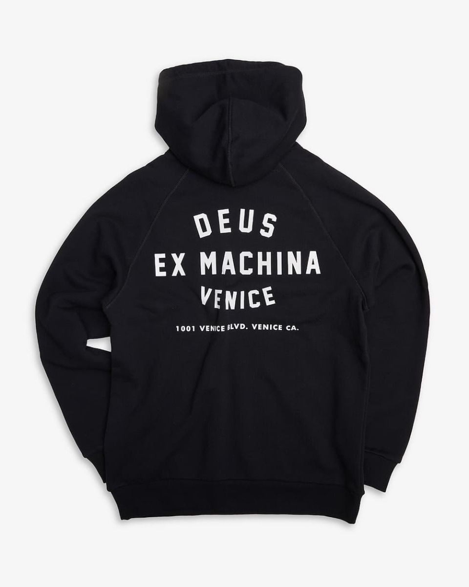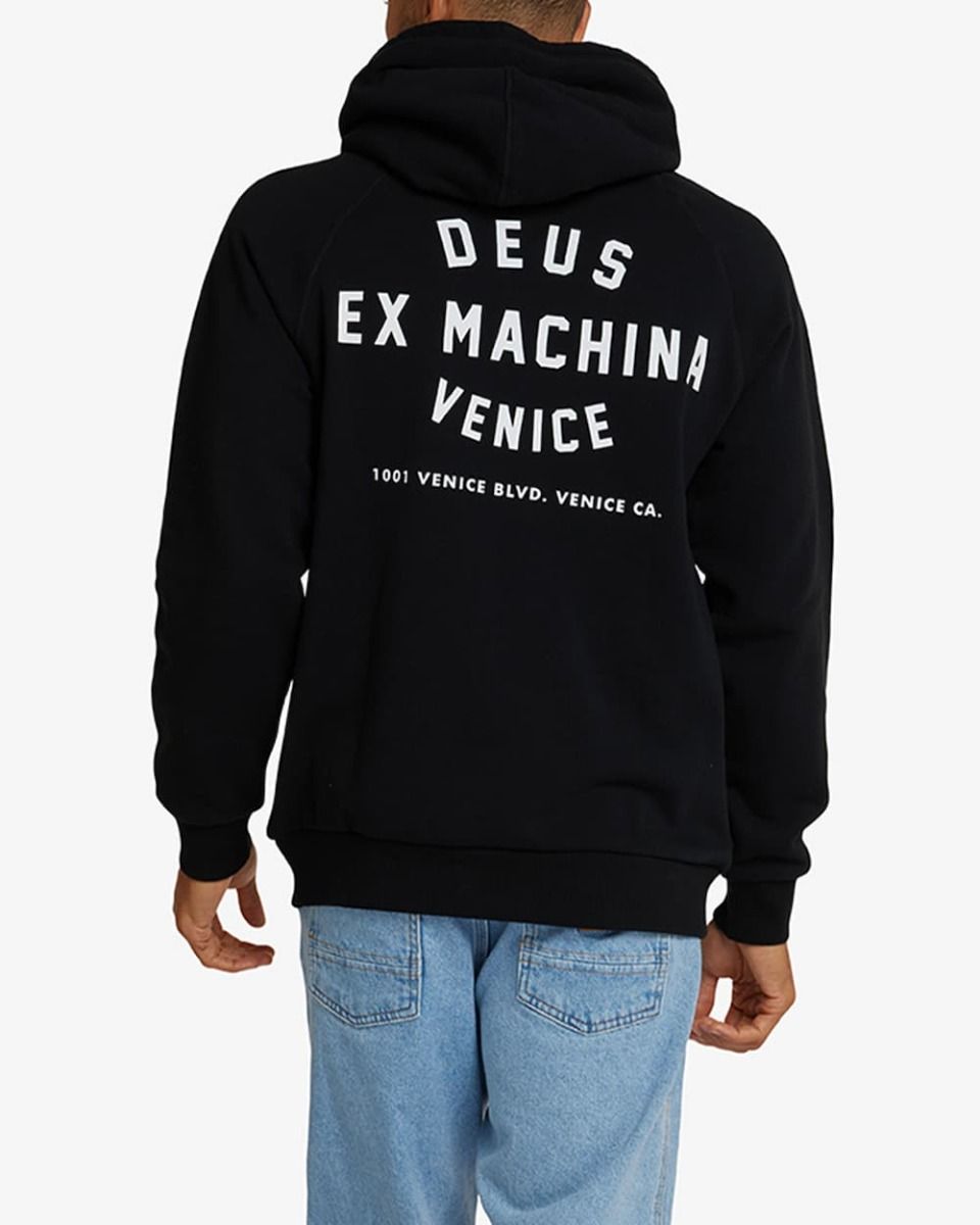 La sudadera con capucha para hombre Venice Address Hoodie en negro (Black) de Deus Ex Machina está confeccionada con tejido polar de algodón cepillado (350g).