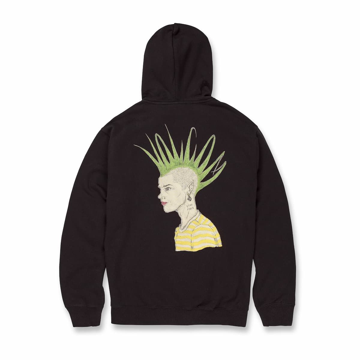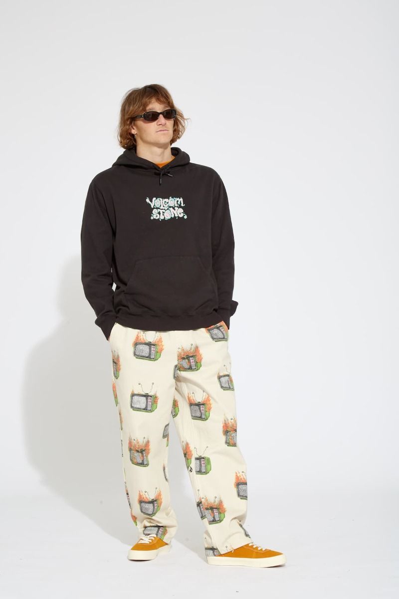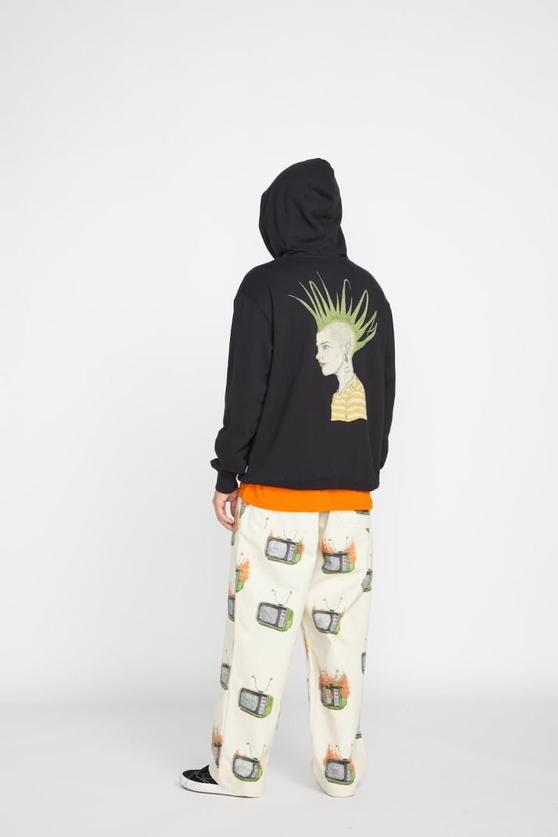 Este hoodie de ajuste clásico, perteneciente a la Colección Featured Artist de Volcom, cuenta con capucha ajustable mediante cordón, embellecedores metálicos, estampado Volcom Stone en relieve en la parte delantera, estampado en la espalda con diseño de Justin Hager, la firma del artista impresa en el cuello interior, bolsillo tipo canguro y una etiqueta de Featured Artist tejida en la costura lateral.