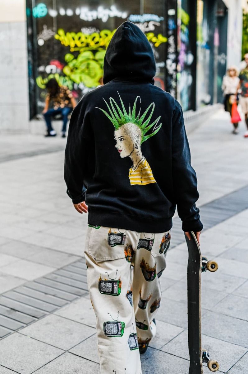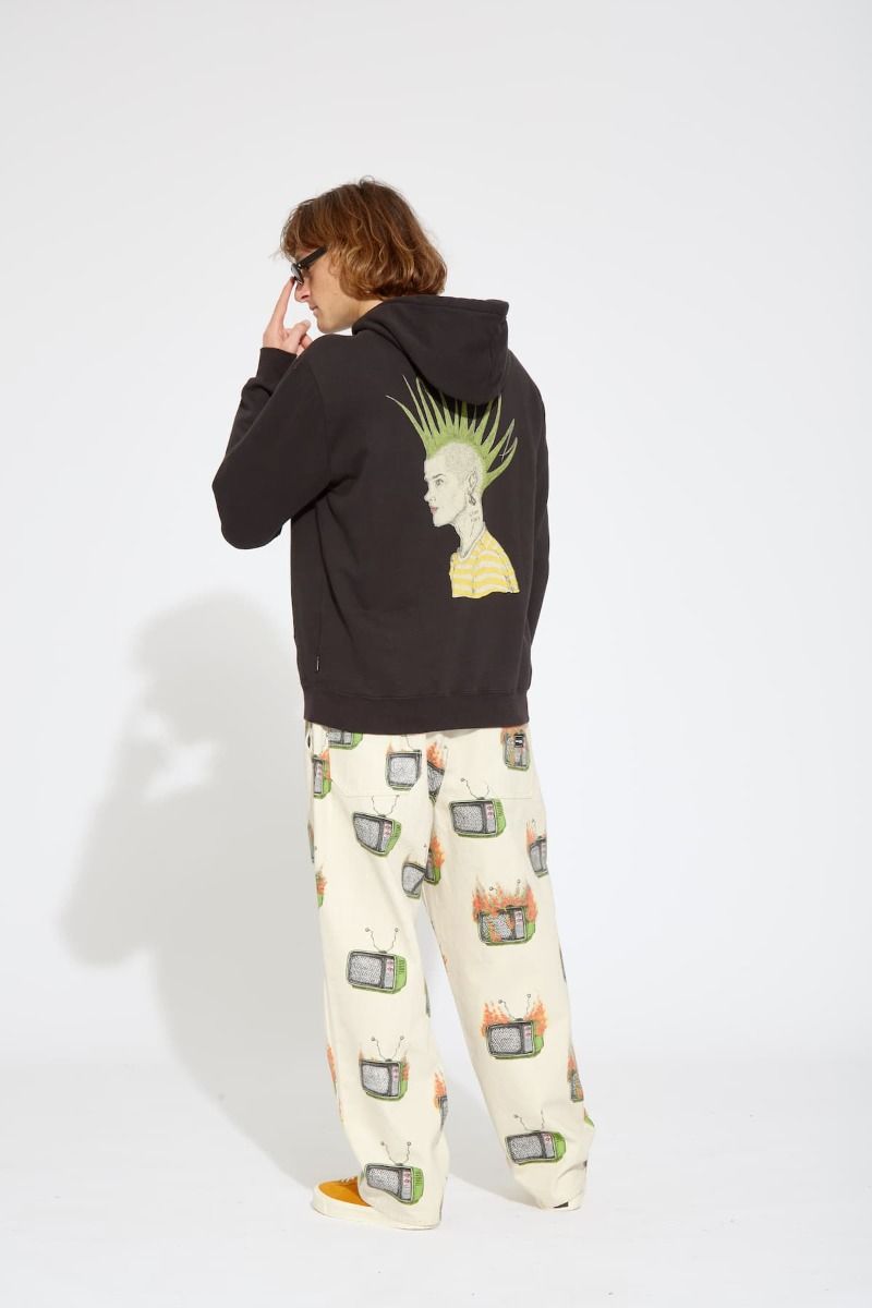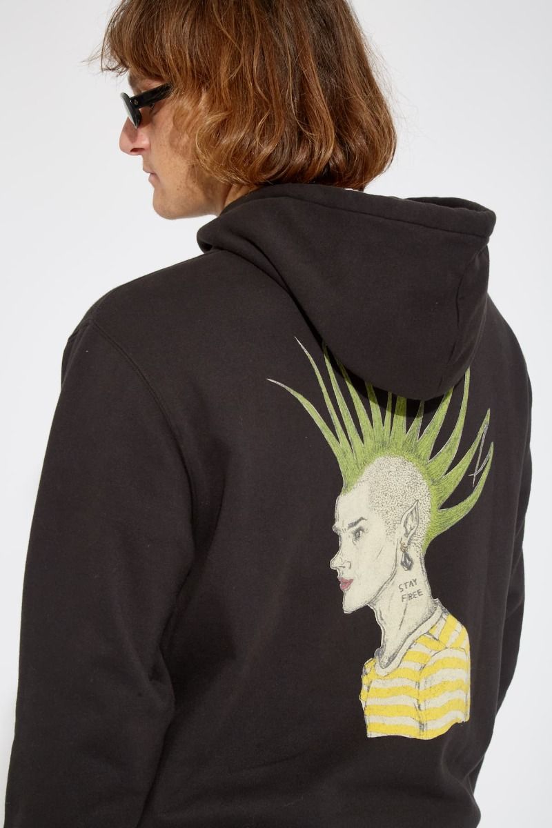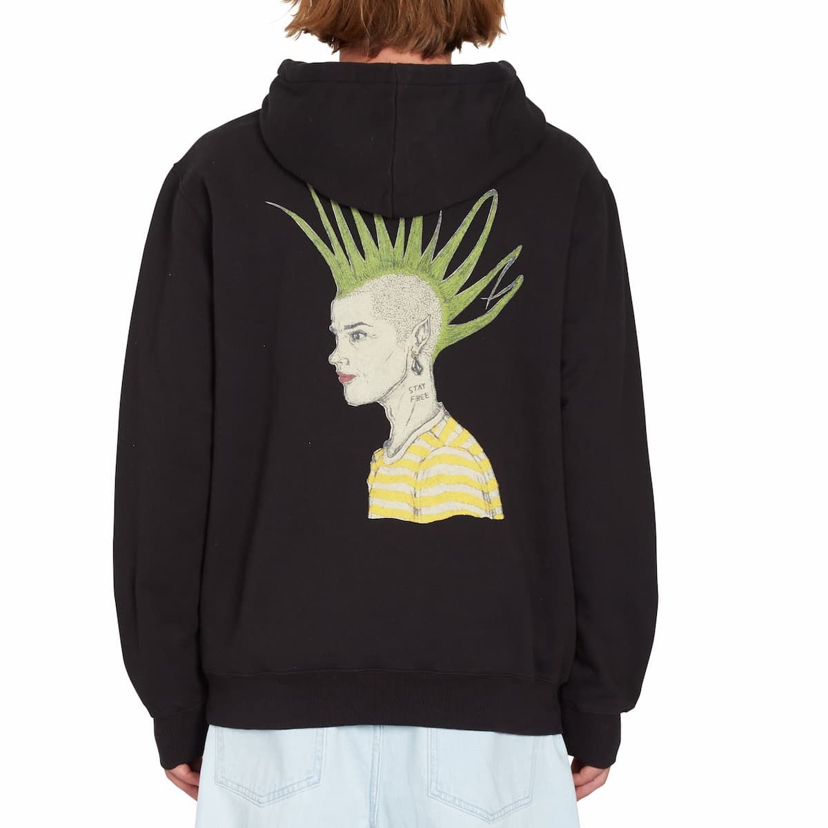 Este hoodie de ajuste clásico, perteneciente a la Colección Featured Artist de Volcom, cuenta con capucha ajustable mediante cordón, embellecedores metálicos, estampado Volcom Stone en relieve en la parte delantera, estampado en la espalda con diseño de Justin Hager, la firma del artista impresa en el cuello interior, bolsillo tipo canguro y una etiqueta de Featured Artist tejida en la costura lateral.
