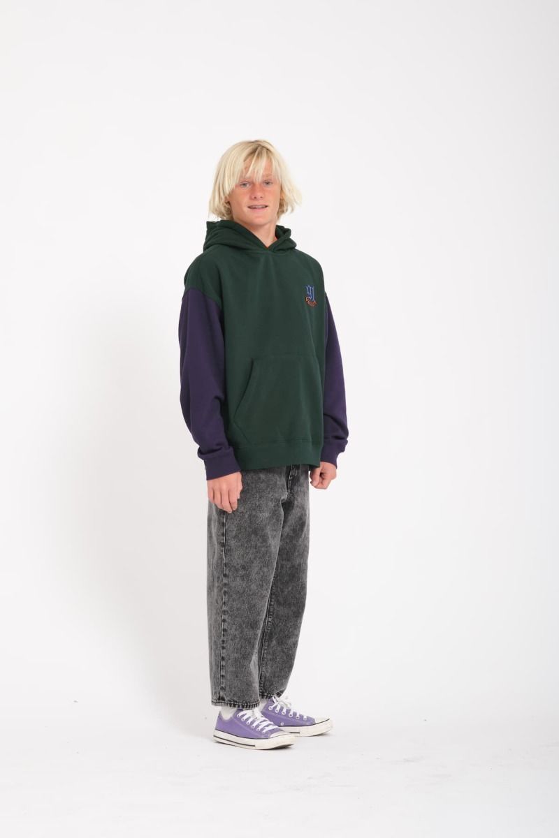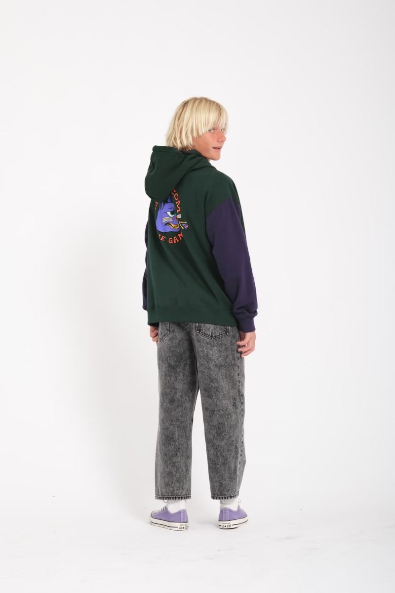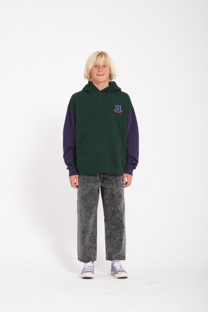 La sudadera con capucha para niños de entre 8 y 14 años Nando Von Arb Pullover Hoodie Boy en verde (Ponderosa Pine) de Volcom está confeccionada con tejido en mezcla de 80% algodón y 20% poliéster reciclado Repreve™ (290g).