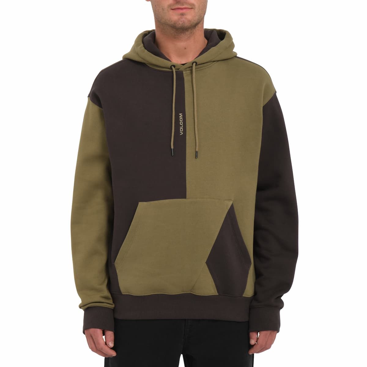 Este cálido hoodie de diseño bicolor cuenta con corte clásico, capucha, cordón de ajuste con embellecedores metálicos Volcom, un amplio bolsillo tipo canguro y bordado Volcom en color verde en la parte delantera.