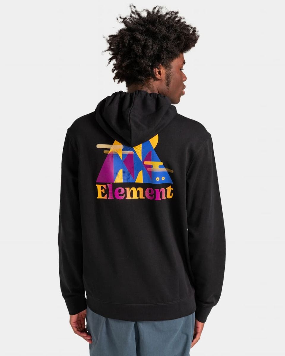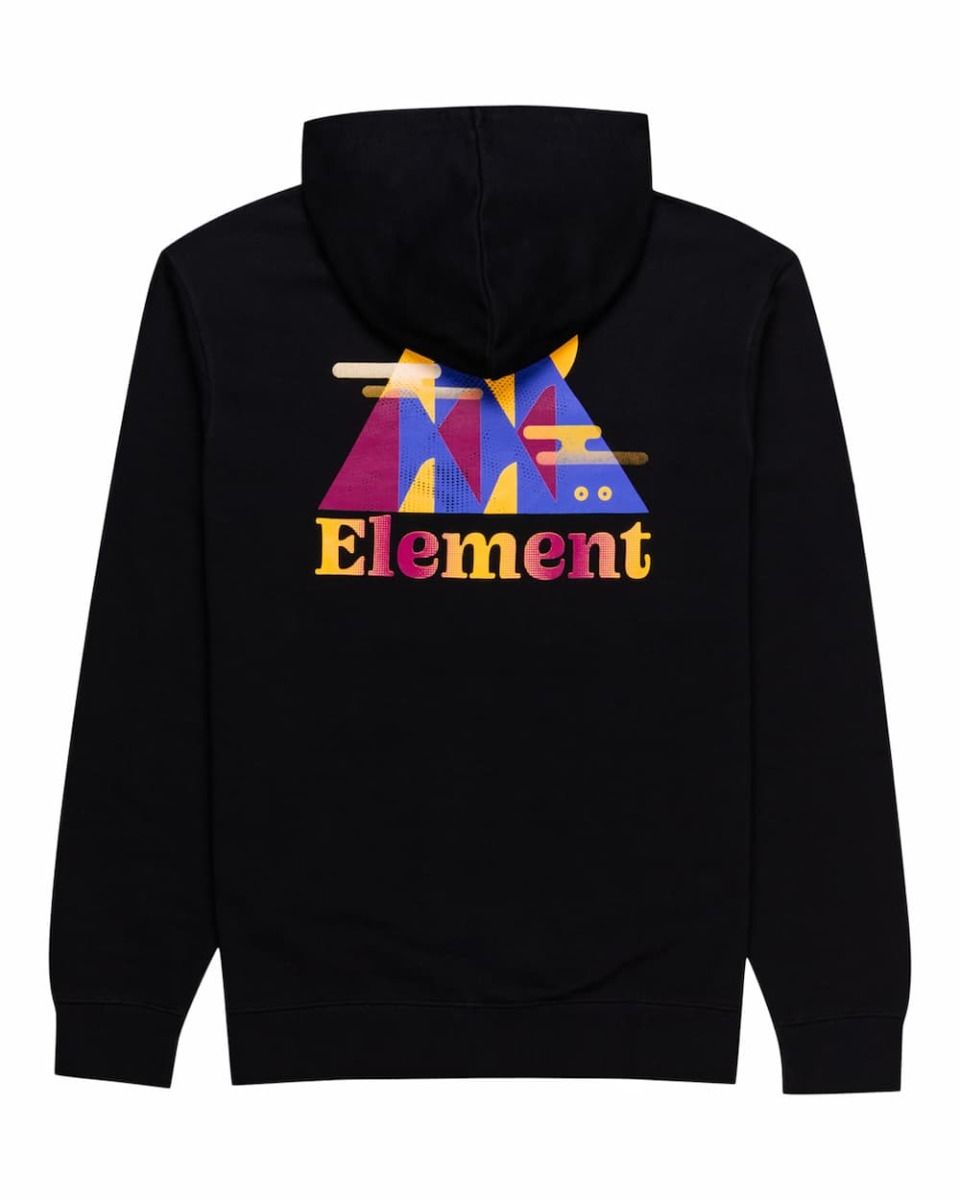 Este hoodie de corte normal cuenta con capucha ajustable mediante cordón, forro interior, puños y dobladillo inferior acanalados, un amplio bolsillo tipo canguro, el logo de Element serigrafiado en el lado izquierdo del pecho y un estampado artístico de colinas en la espalda.