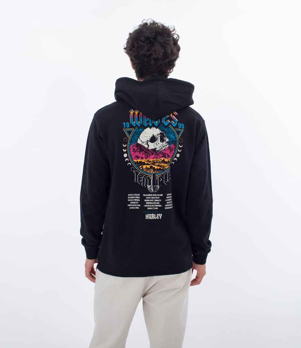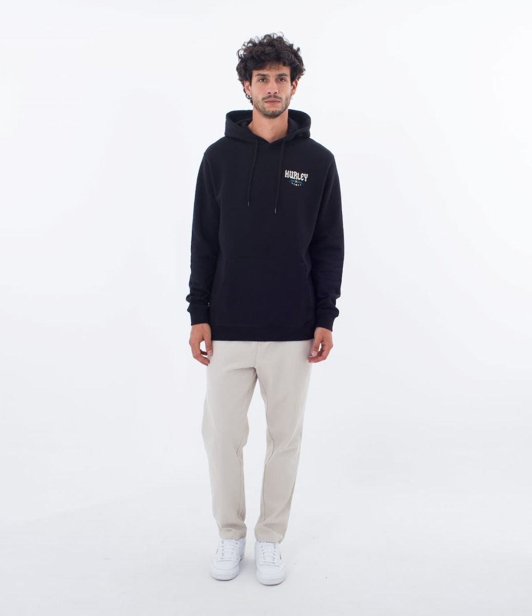 Este hoodie para hombre de ajuste regular, perteneciente a la "Colección Wave Tour Series" de Hurley cuenta con suave forro polar cepillado, capucha con doble forro y ajustable mediante cordón, puños y cintura acanalados, bolsillo delantero tipo canguro y serigrafiados artísticos de Wave Tour impresos en el lado izquierdo del pecho y en la espalda.