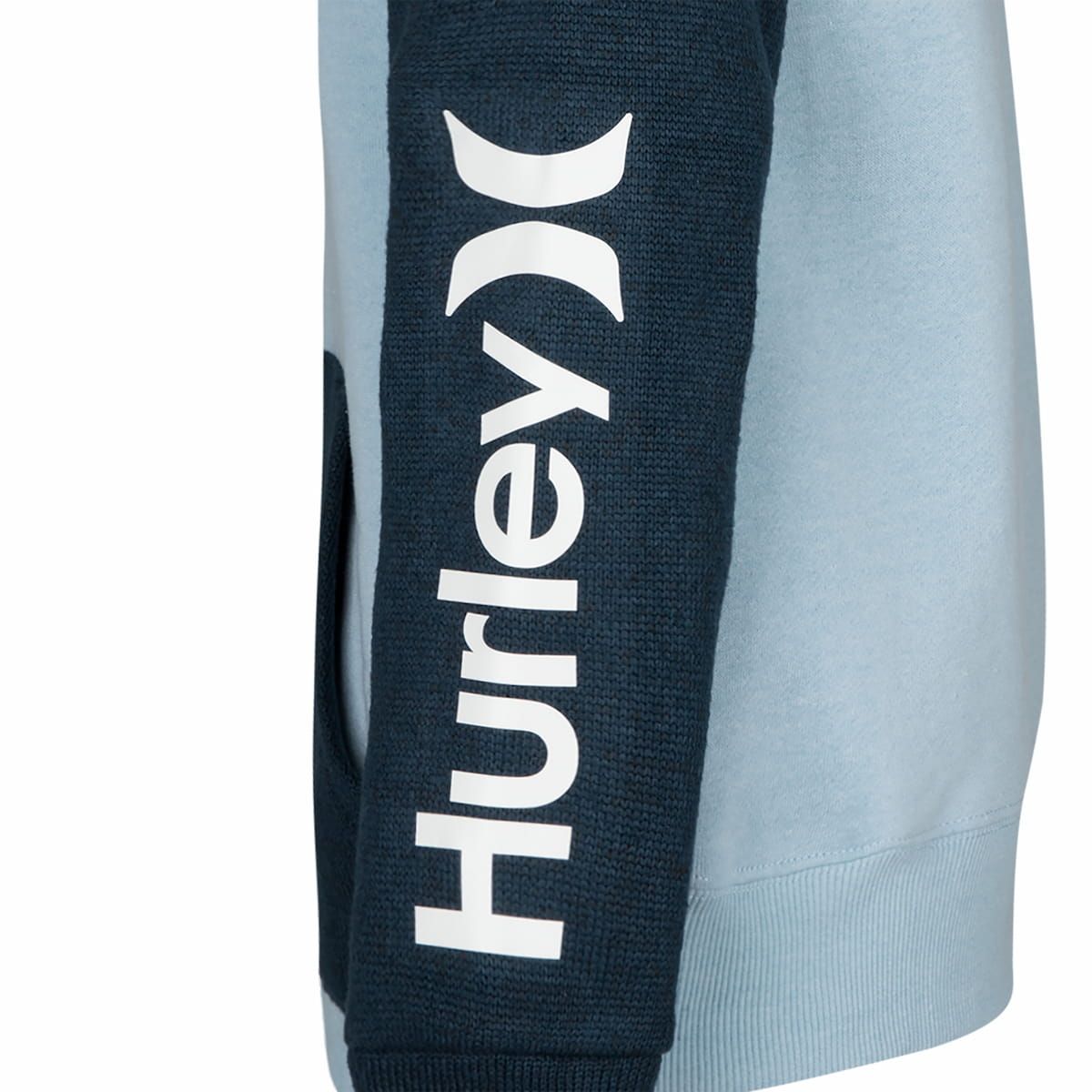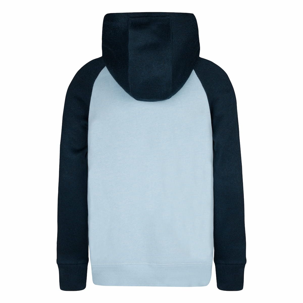 La sudadera de capucha para niños de 6-14+ años Naturals Icon Boys Pullover en tono azul celeste y azul marino de Hurley es la combinación perfecta de look deportivo y comodidad para los más jóvenes. Con un diseño de mangas raglán en contraste de color azul marino y serigrafía en el pecho y la manga, esta sudadera ofrece un estilo dinámico y funcional para el día a día.
