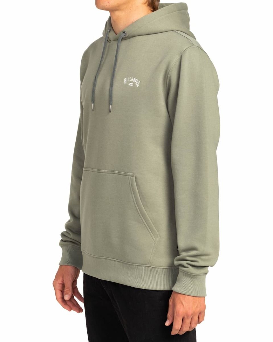 La sudadera con capucha para hombre Arch en verde (Sage) de Billabong está confeccionada con tejido ecológico polar doble y teñido en mezcla de 60% poliéster reciclado y 40% algodón cepillado (280g/m2).