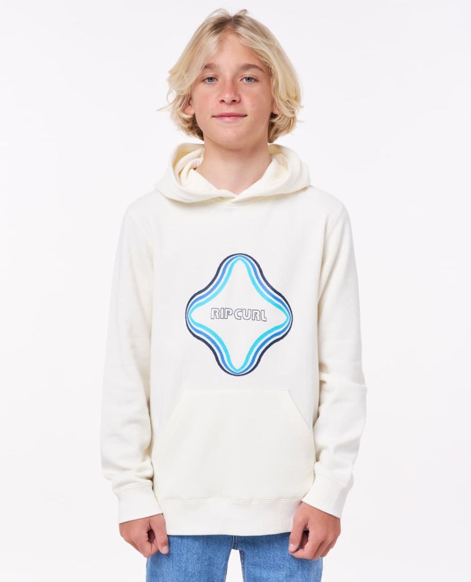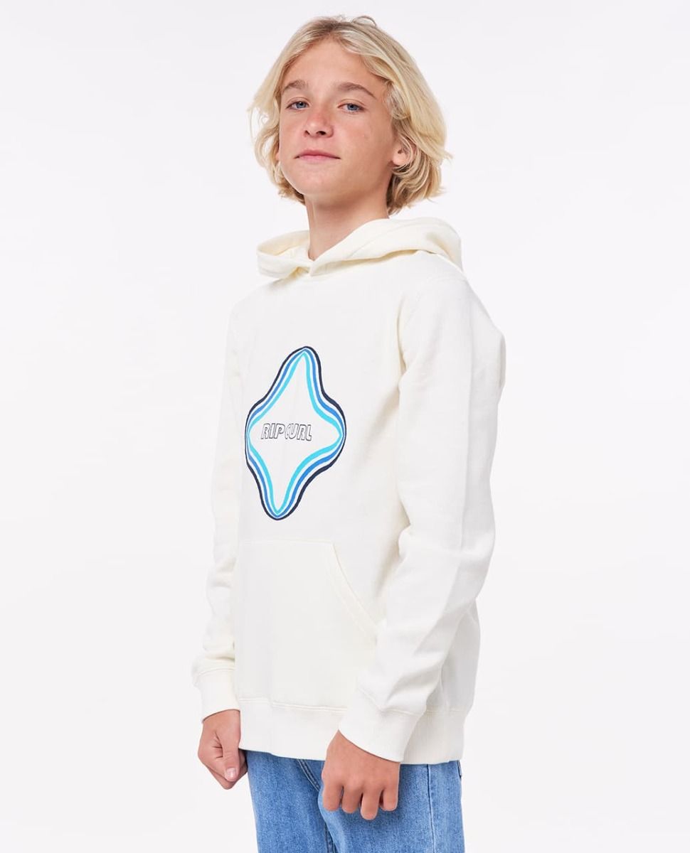 La sudadera con capucha para niños de entre 8 y 16 años Surf Revival Hood Boy en tono blanco hueso (Bone) de Rip Curl está confeccionada con 60% algodón y 40% poliéster.