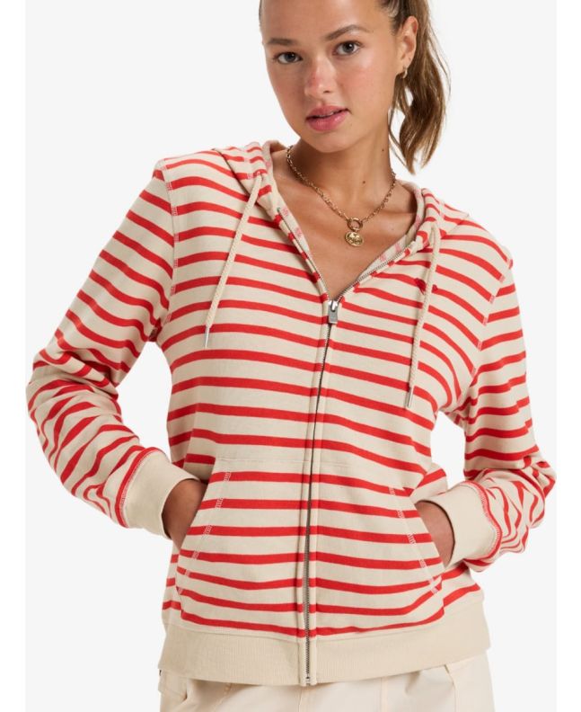 Sudadera con capucha y cremallera Roxy Perfect Stripe Roja