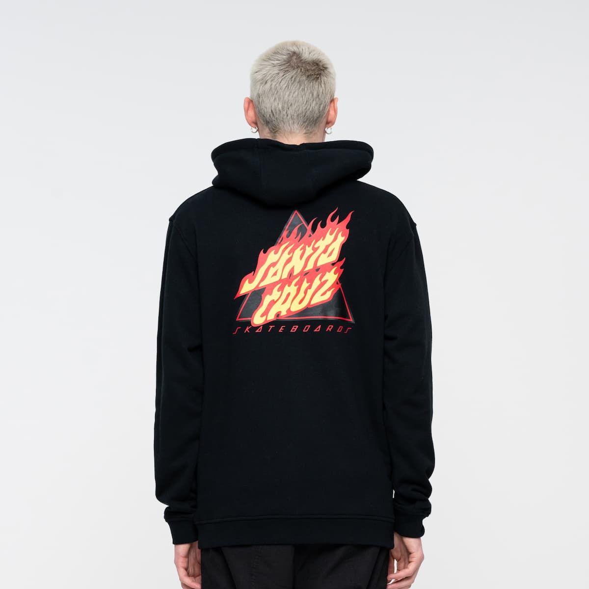 Este hoodie de ajuste regular cuenta con capucha ajustable mediante cordón, forro polar cepillado de 330 gsm, un amplio bolsillo tipo canguro y un triángulo con la inscripción Santa Cruz Skateboards en llamas impreso en el lado izquierdo del pecho y en la espalda.
