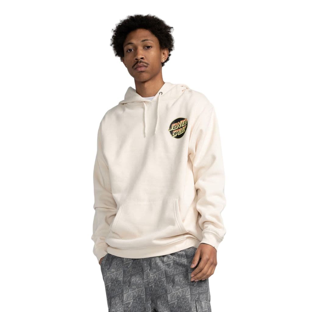 La sudadera con capucha para hombre Kendall Wolf Dot Hood en tono blanco tiza (Chalk) de Santa Cruz Skateboards está confeccionada con 80% de algodón y 20% poliéster (330gsm).