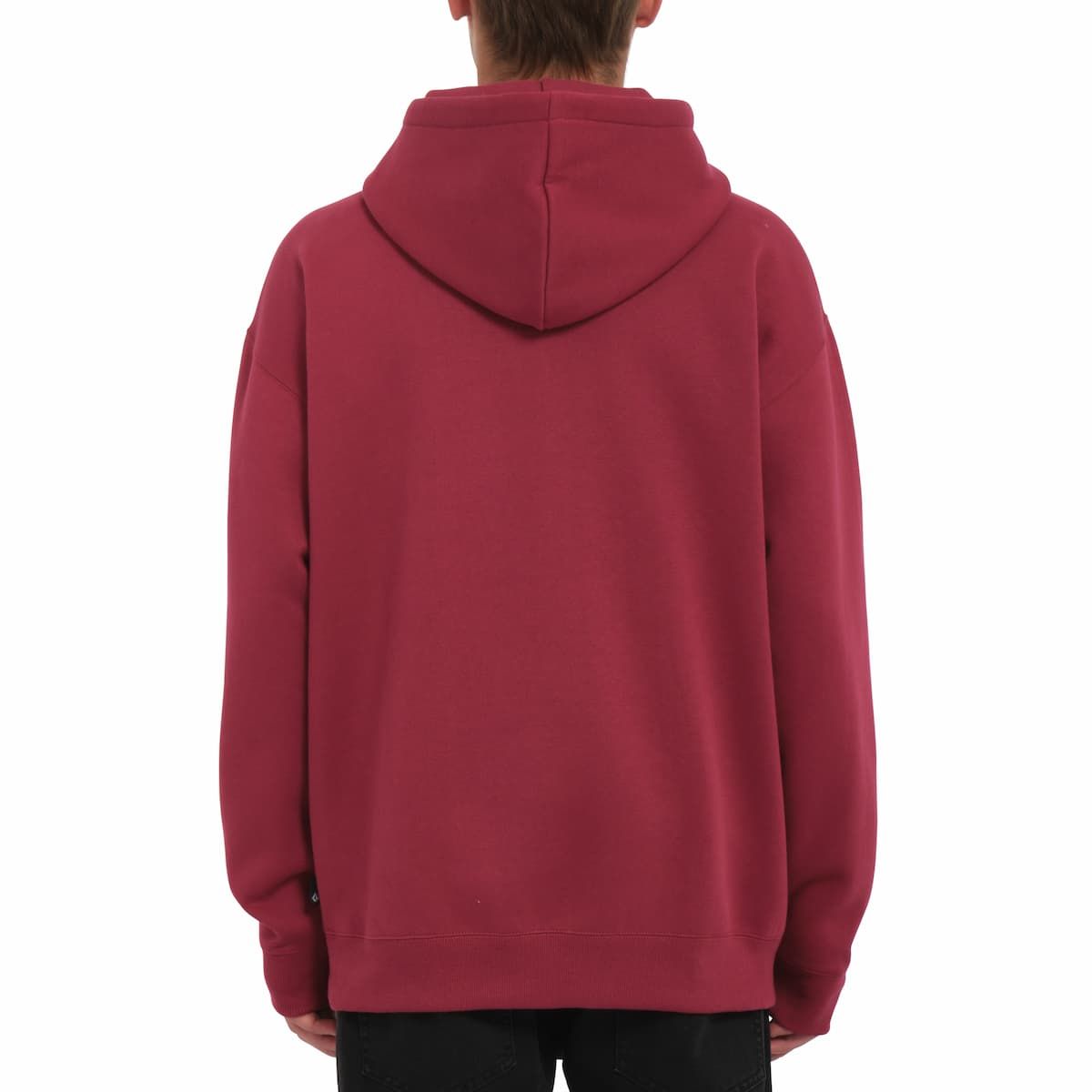 La sudadera con capucha para hombre Single Stone PO en tono granate (Wine) de Volcom confeccionada con tejido afelpado en mezcla de 80% algodón y 20% poliéster reciclado Repreve™ (290g).