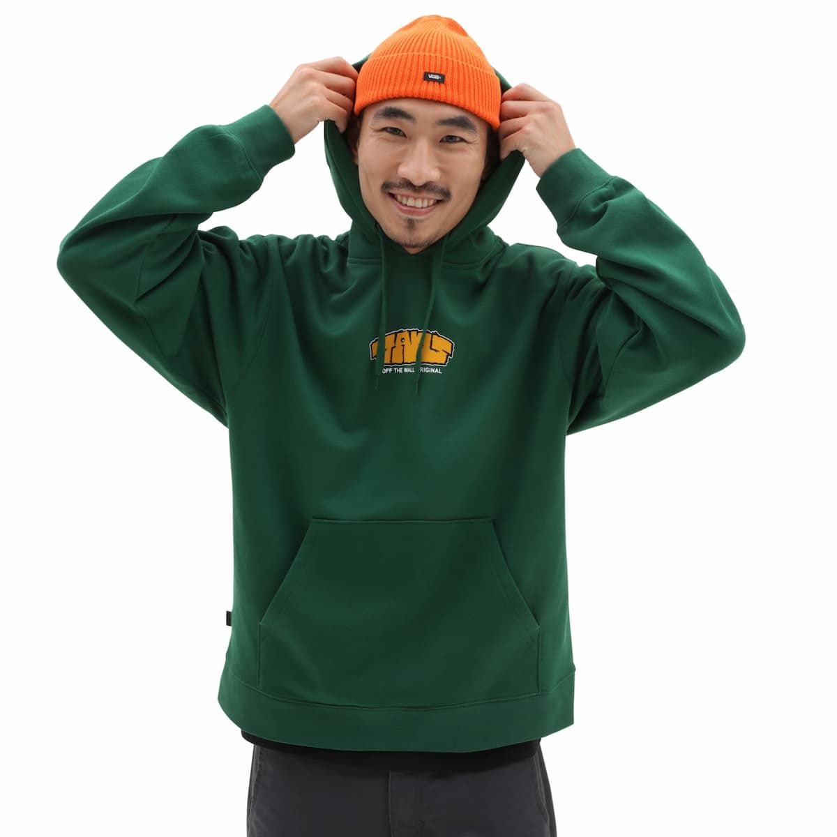 Este hoodie cuenta con capucha ajustable mediante cordón, un amplio bolsillo tipo canguro y estampado "Vans Off The Wall Original" en la parte delantera.