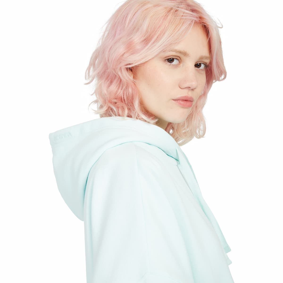 La sudadera con capucha para mujer Stone Heart II en tono aguamarina (Pale Aqua) de Volcom está confeccionada con tejido en mezcla de 64% algodón y 36% poliéster (280g).