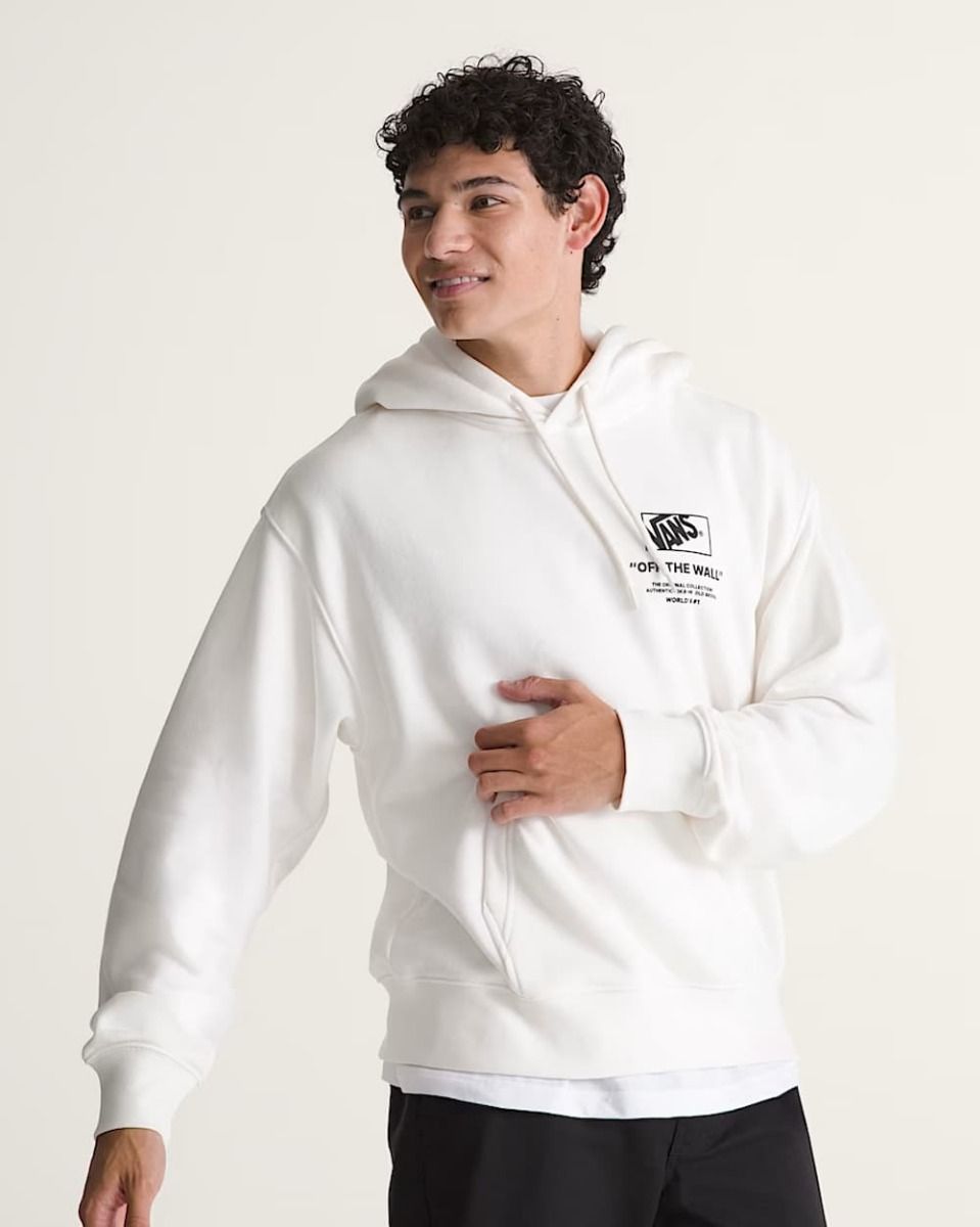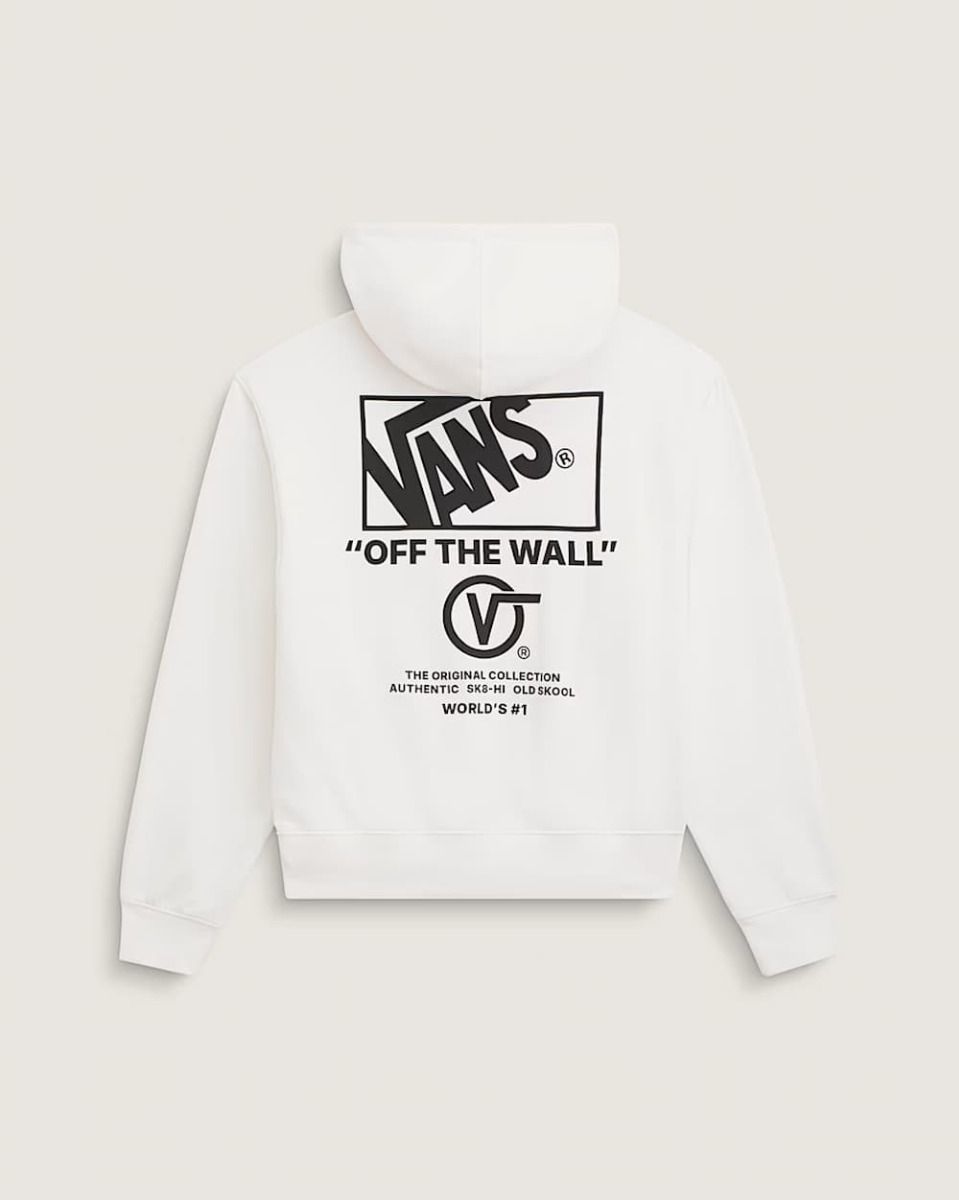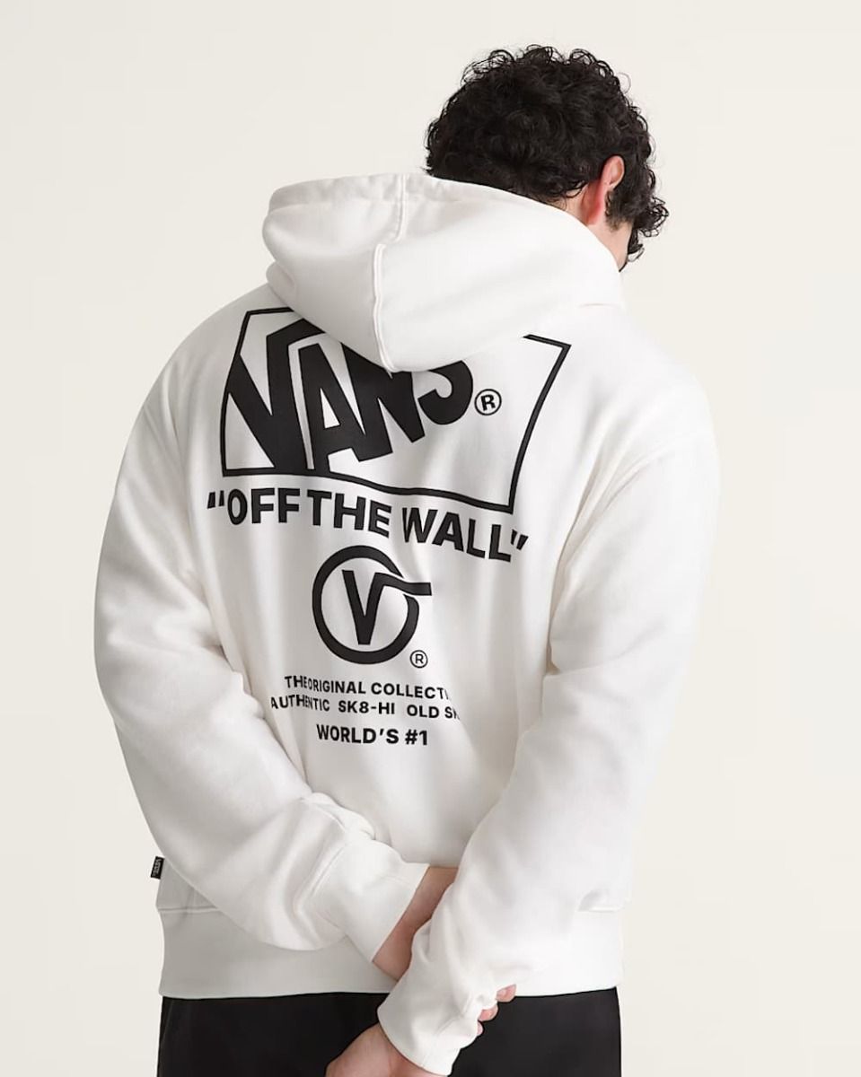 La Vans Stacked Hi Pullover Hoodie es una sudadera con capucha que representa de forma directa el legado skater y streetwear de Vans. Su diseño combina un look limpio en la parte frontal con una gráfica trasera de gran impacto, protagonizada por el icónico logo Vans “Off The Wall”, una seña de identidad dentro de la moda urbana y el skateboarding.