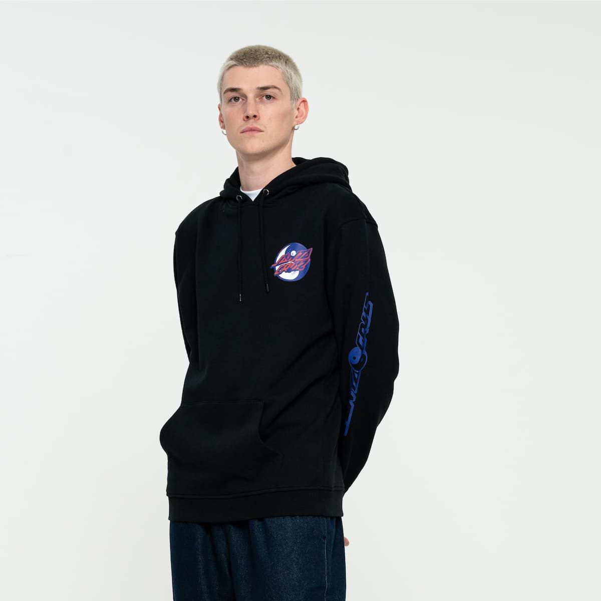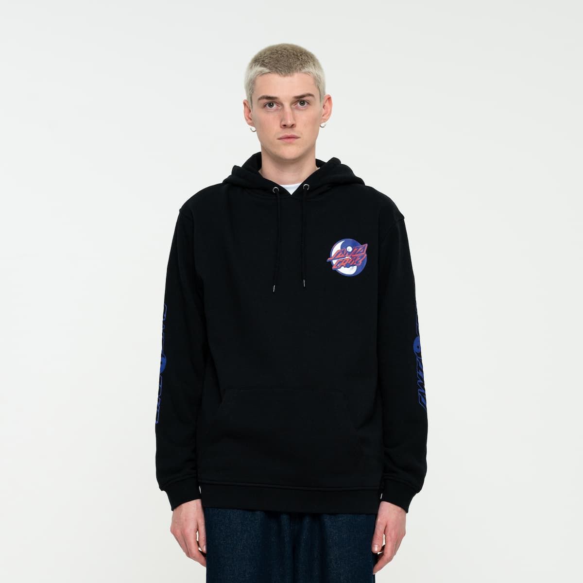 Este hoodie de ajuste regular cuenta con capucha ajustable mediante cordón, forro polar cepillado de 330 gsm, un amplio bolsillo tipo canguro y el logo de Santa Cruz junto con el símbolo del Yin Yang impresos en el lado izquierdo del pecho, en la espalda y en la manga izquierda.