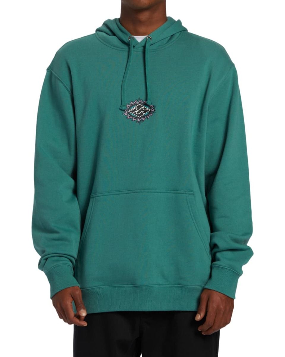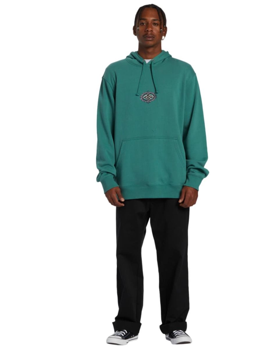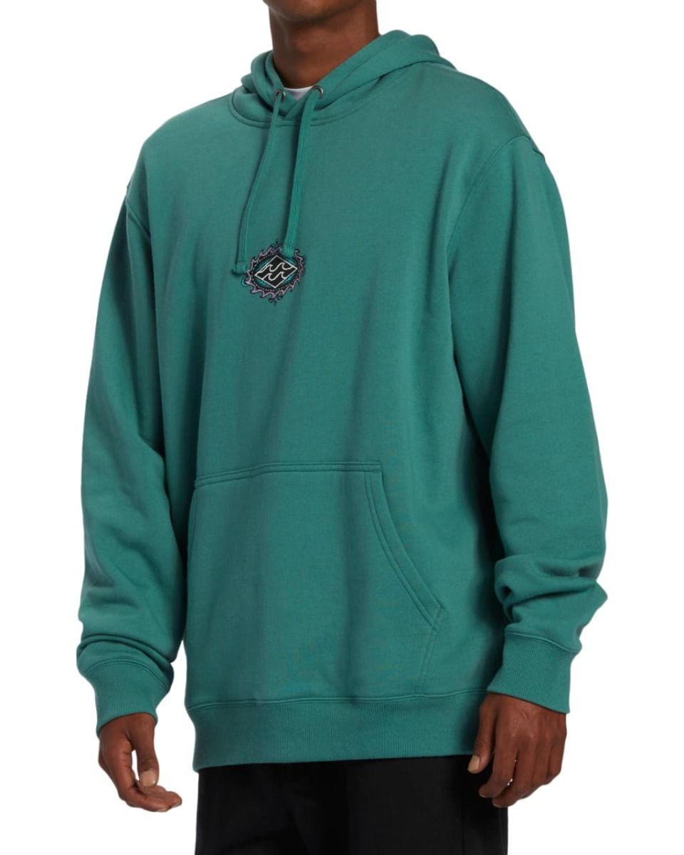 Este hoodie surfero turquesa de corte clásico cuenta con capucha ajustable mediante cordón, lavado en prenda con suavizante para un tacto afelpado, un bolsillo delantero tipo canguro y serigrafiado del logo Billabong en el lado izquierdo del pecho y en la espalda.