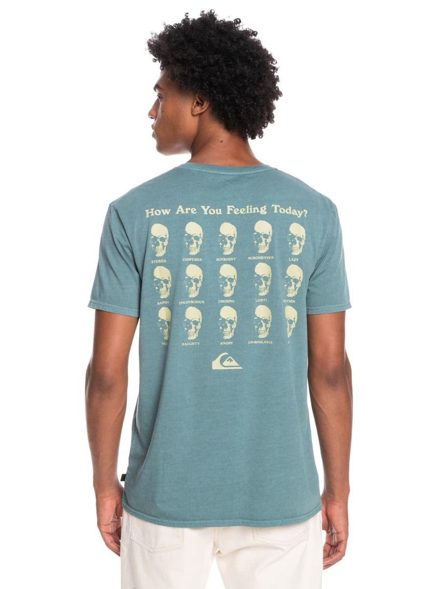 Esta camiseta de corte clásico cuenta con cuello redondo, manga corta, estampado original "How are you feeling today?" en la espalda y el logo de Quiksilver en el pecho.