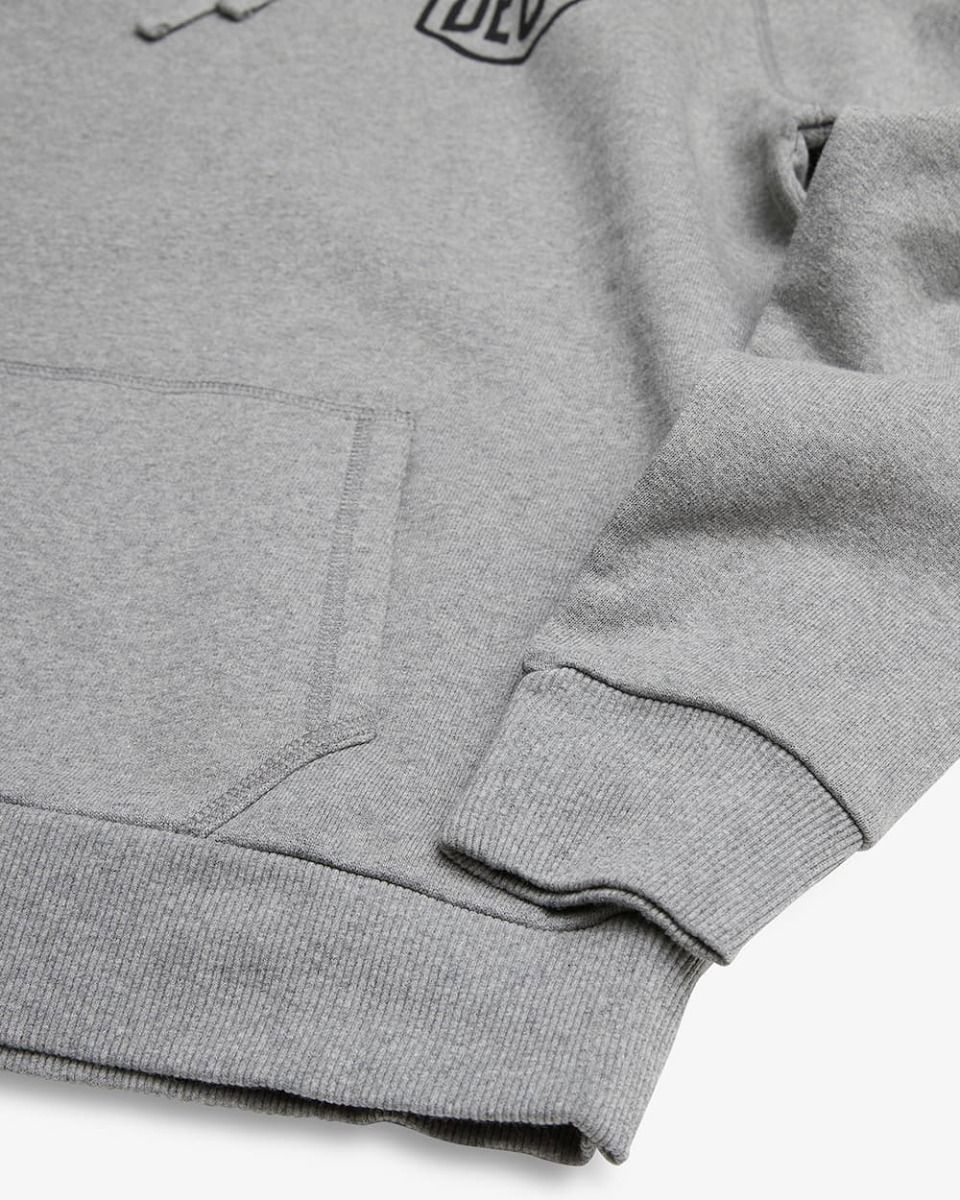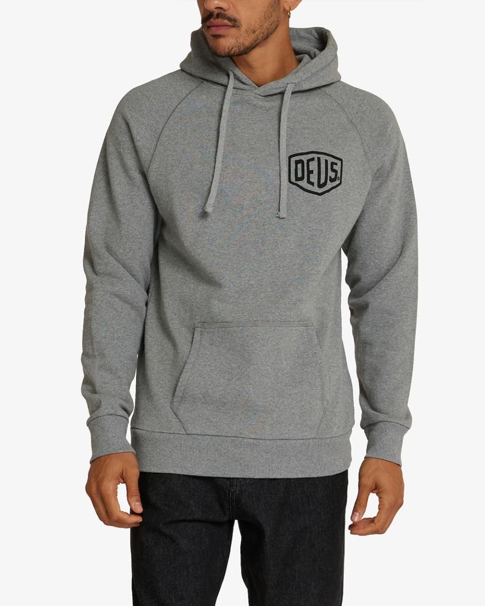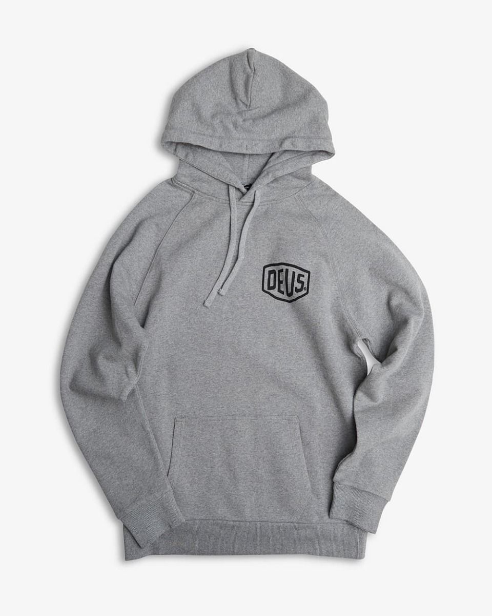 La sudadera con capucha para hombre Ibiza Address Hoodie en gris (Grey Marle) de Deus Ex Machina está confeccionada con tejido de algodón cepillado (350g).