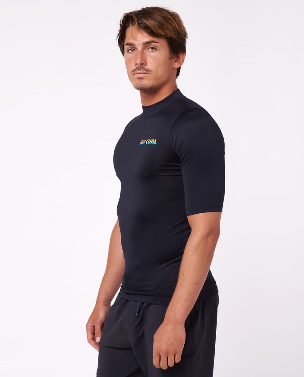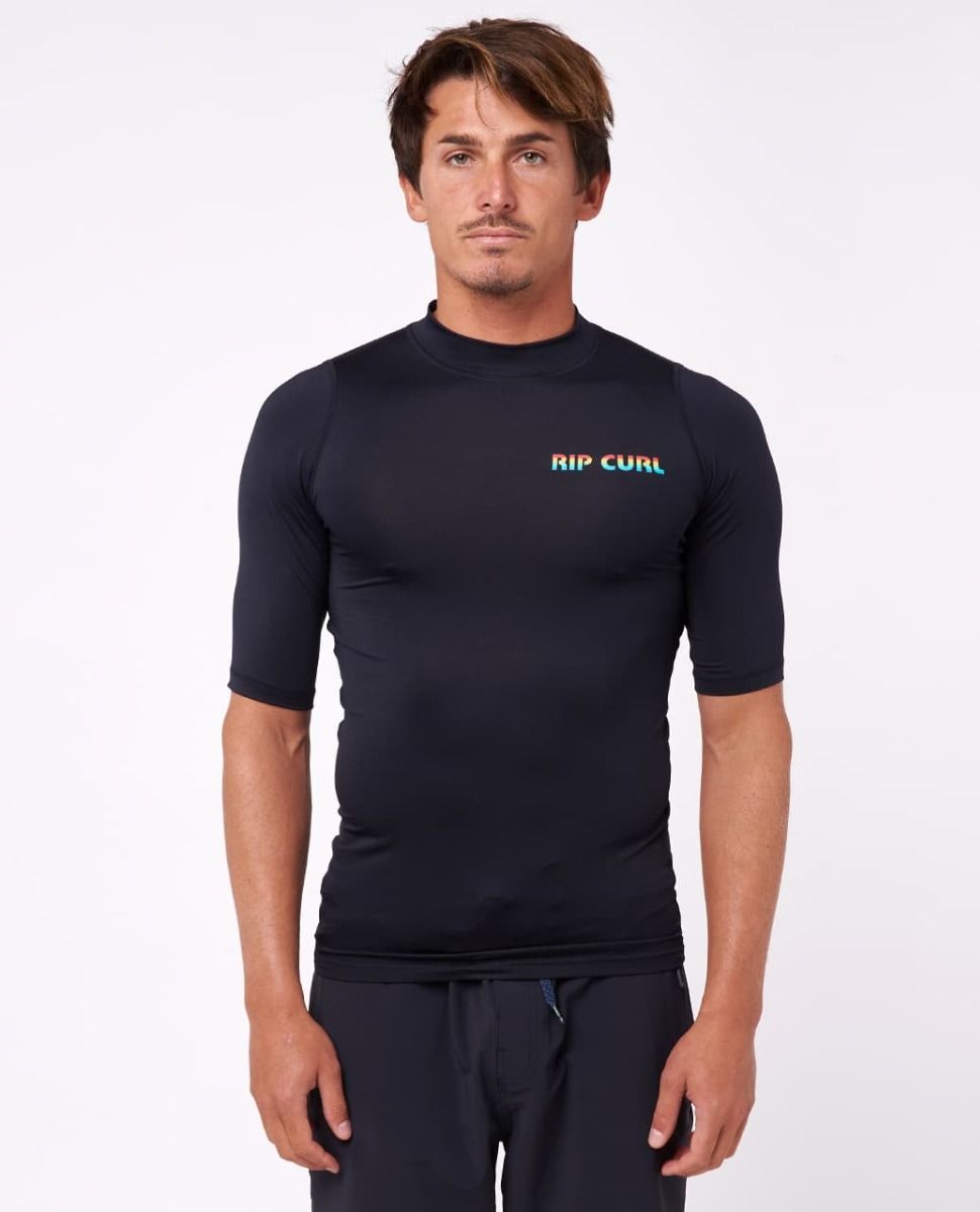 Licra de manga corta con protección solar UPF 50+ Rip Curl Icons Perf SSL UV en color negro para hombre