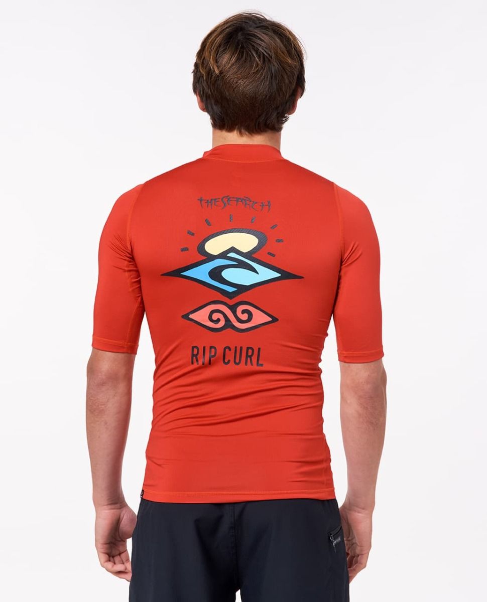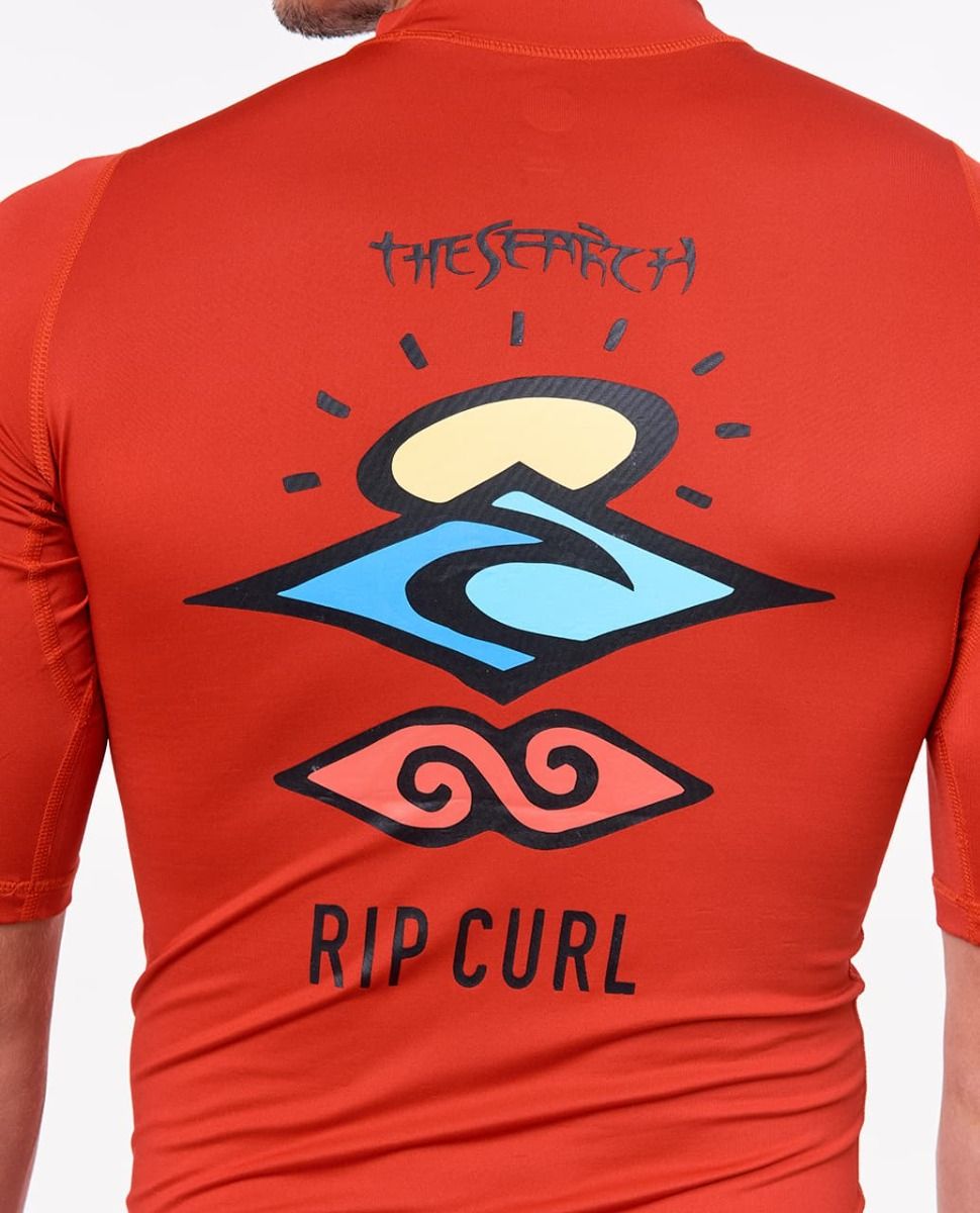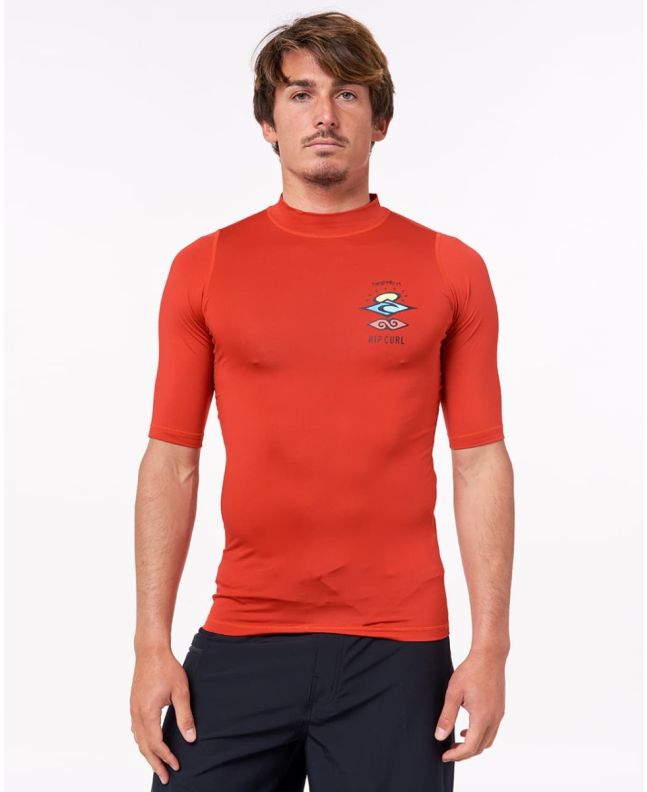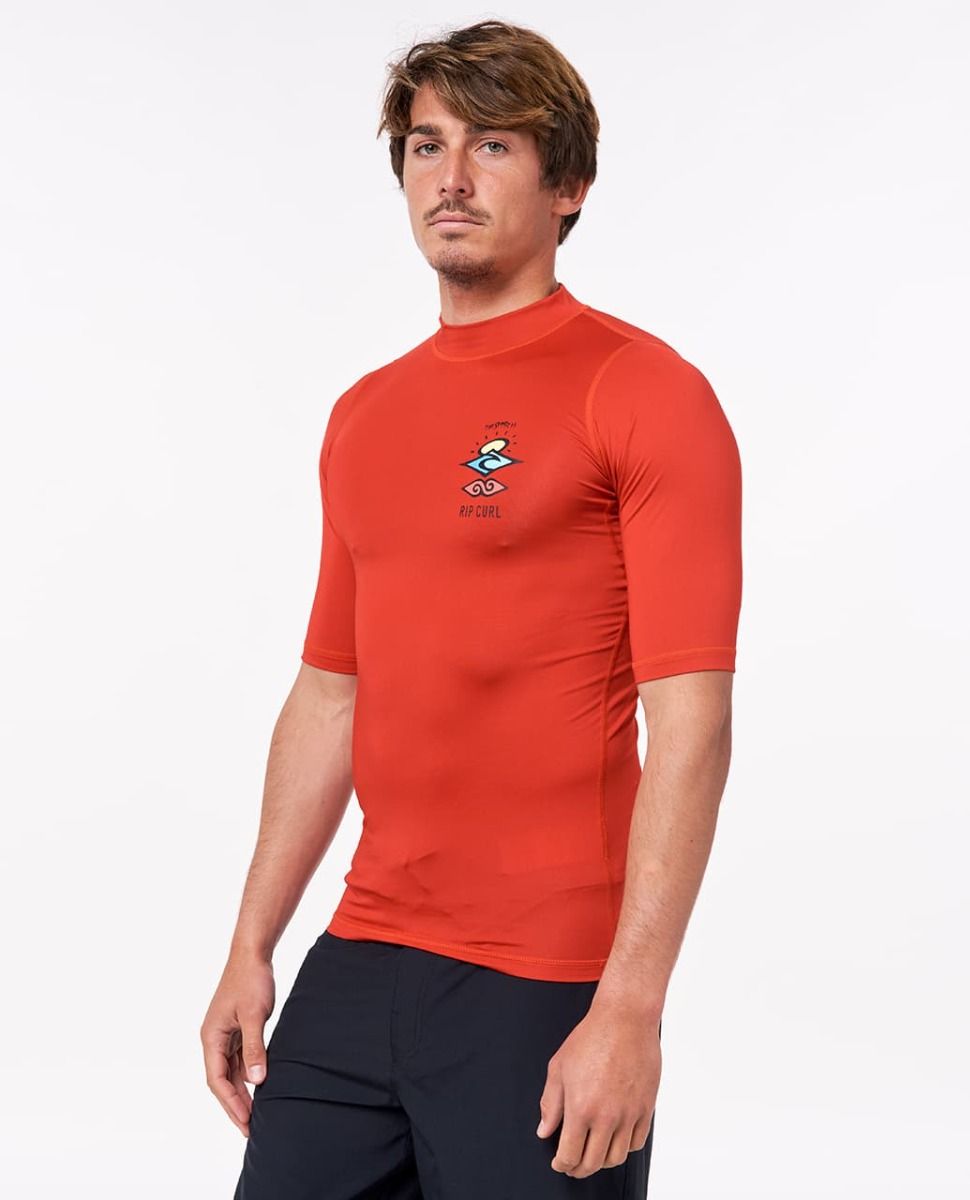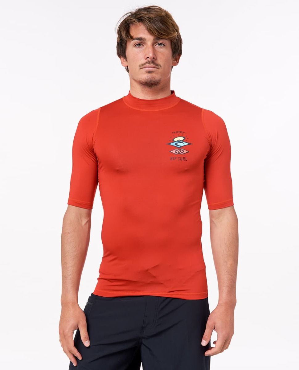 Licra de manga corta con protección solar UPF 50+ Rip Curl Icons Perf SSL UV en color rojo para hombre