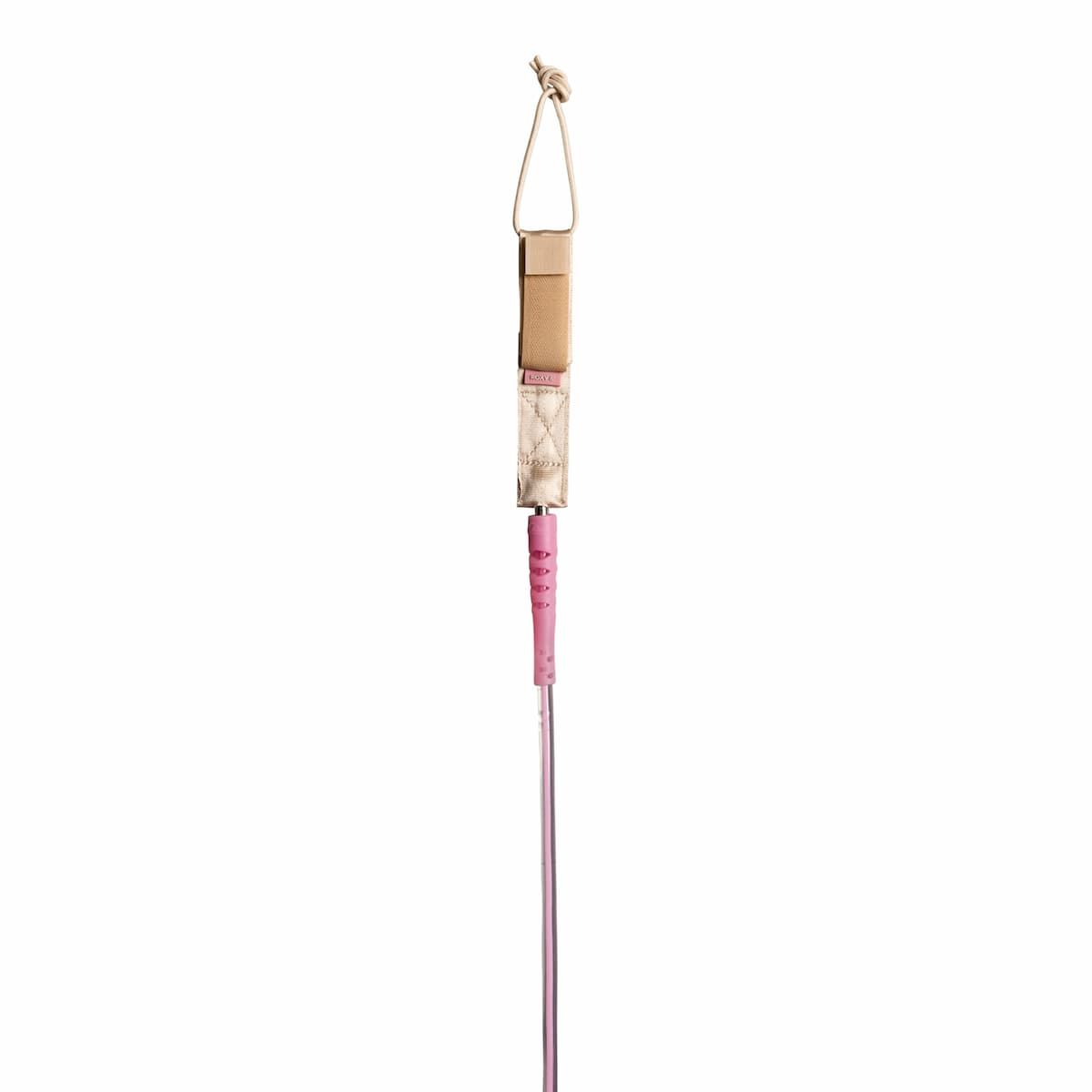 El leash Roxy Lohifushi 7' rosa claro cuenta con una tobillera acolchada de neopreno más ancha, un fuerte cordón de 7 mm de diámetro, cierre autoadherente, doble giravueltas anti-enredos de acero inoxidable, tira de seguridad moldeada en silicona para soltarlo fácilmente y es ideal para olas de 0,3 m a 2 m.