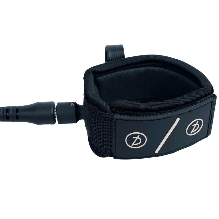 Este leash 7' 7mm cuenta con cierre de velcro con parche extra para mayor agarre, eslabones giratorios de acero inoxidable y tobillera de neopreno con interior antideslizante.