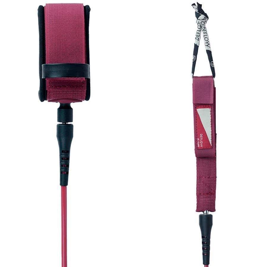 El leash Deflow 7' 7mm está disponible en negro (Black) y burdeos (Burgundy).
