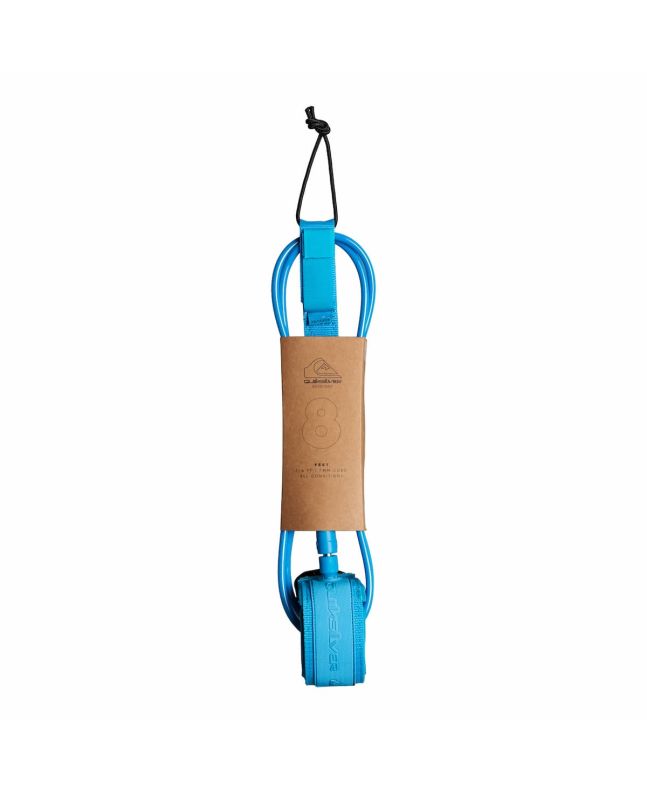 El leash Quiksilver Everyday 8' Azul cuenta con una tobillera acolchada de neopreno, un fuerte cordón resistente a las roturas y al agrietamiento de 7mm de diámetro, doble giravueltas de acero inoxidable para eliminar torsiones, lengüeta de liberación rápida en caso de emergencia, cierre autoadherente de velcro, un bolsillo oculto en el puño para guardar una llave y cuerno moldeado para mantener el cordón alejado de tus pies.