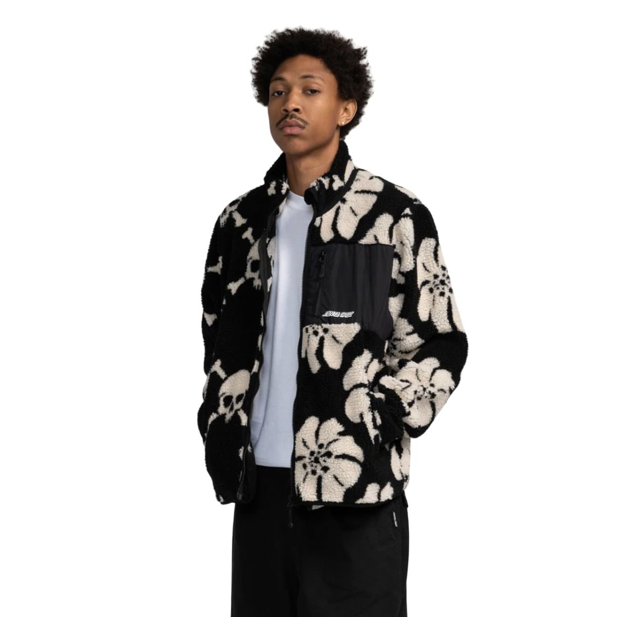 La Chaqueta Sherpa Santa Cruz Negra y Blanca para hombre te ayudará a para mantener el calor en los días más fríos sin renunciar a tu lado skater.