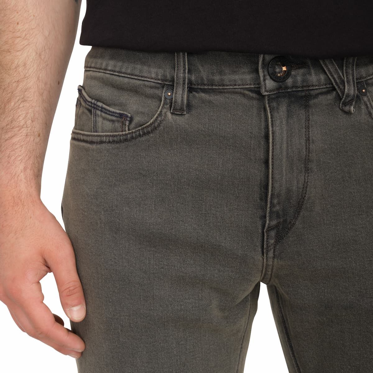 El pantalón vaquero para hombre Solver Denim en color negro descolorido (Black Ozone) de Volcom está confeccionado con 99% algodón y 1% elastano.