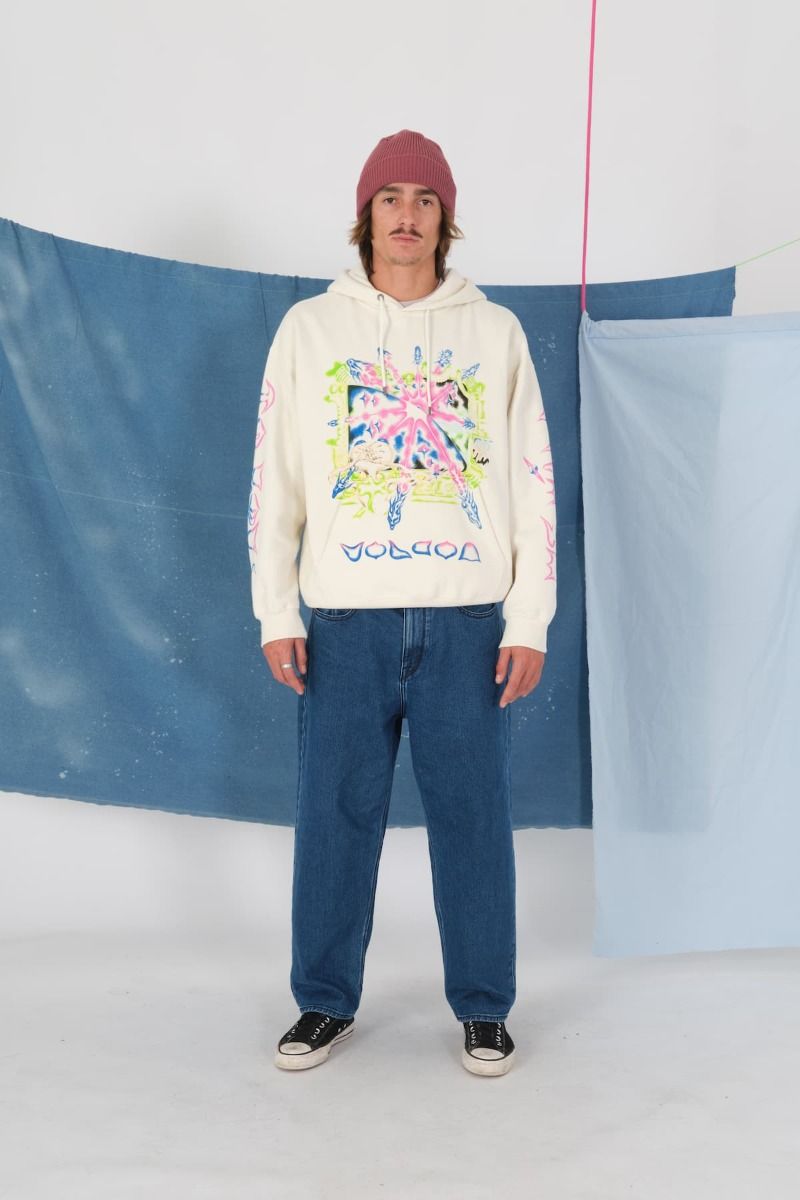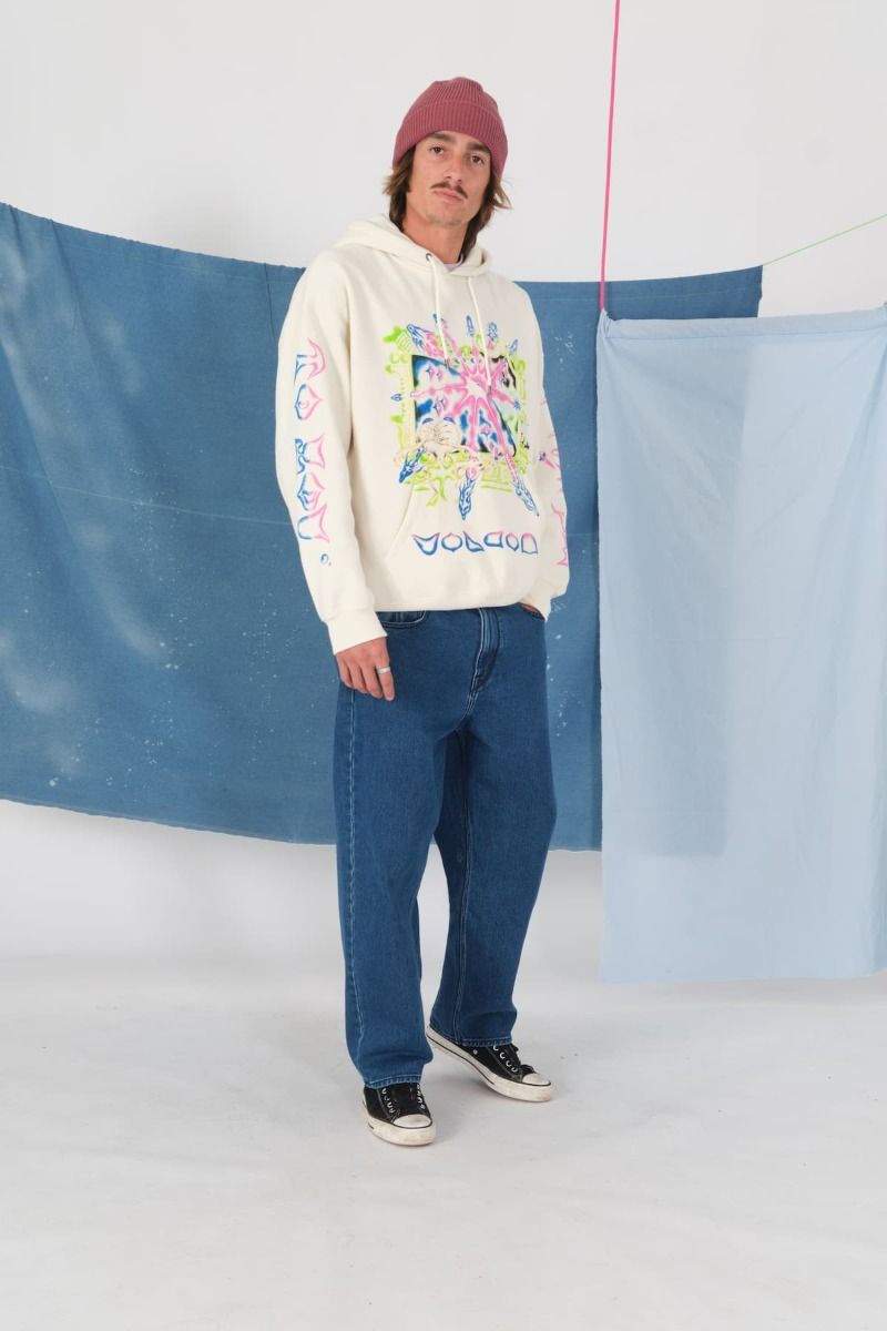 Estos vaqueros para hombre, pertenecientes a la Colección V Entertainment de Volcom y diseñados en colaboración con Noa Deane, cuentan con corte loose tapered, tiro bajo, abertura de pierna de 46cm (18"), tejido vaquero índigo con pespuntes tono sobre tono y lavado con enzimas, firma de Noa Deane en la cintura interior, bordado Stone en la pierna izquierda, junto con los detalles característicos de Volcom Brand Jeans.