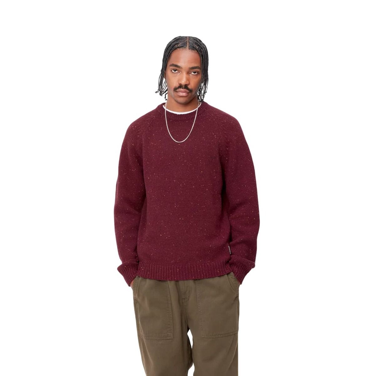 El jersey Anglistic Sweater Speckled Malbec para hombre de Carhartt Work In Progress es la elección ideal si buscas una prenda versátil, cálida y con un diseño que perdura temporada tras temporada.