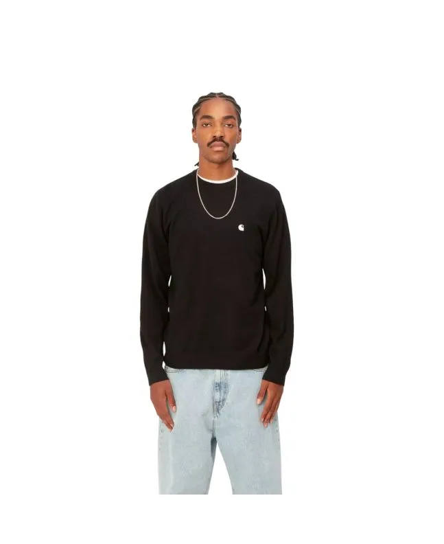 Jersey de lana Carhartt WIP Madison Sweater en color negro con logo blanco cera para hombre