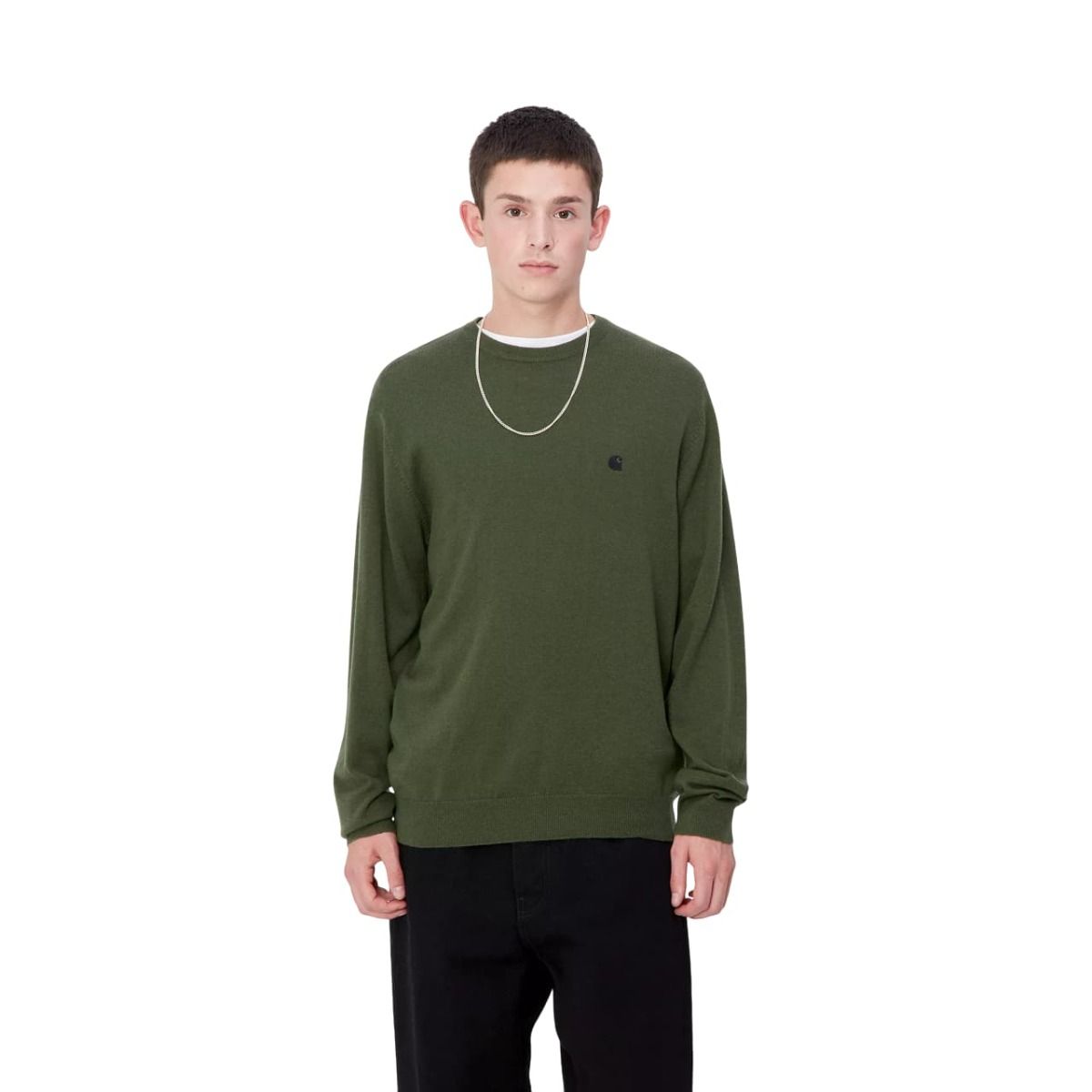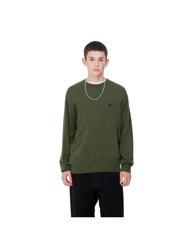 Jersey de lana Carhartt WIP Madison Sweater en color verde estragón con el logo negro para hombre