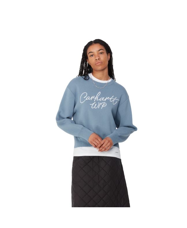 Jersey Carhartt WIP Women's Signature Sweater en color azul y blanco cera para mujer