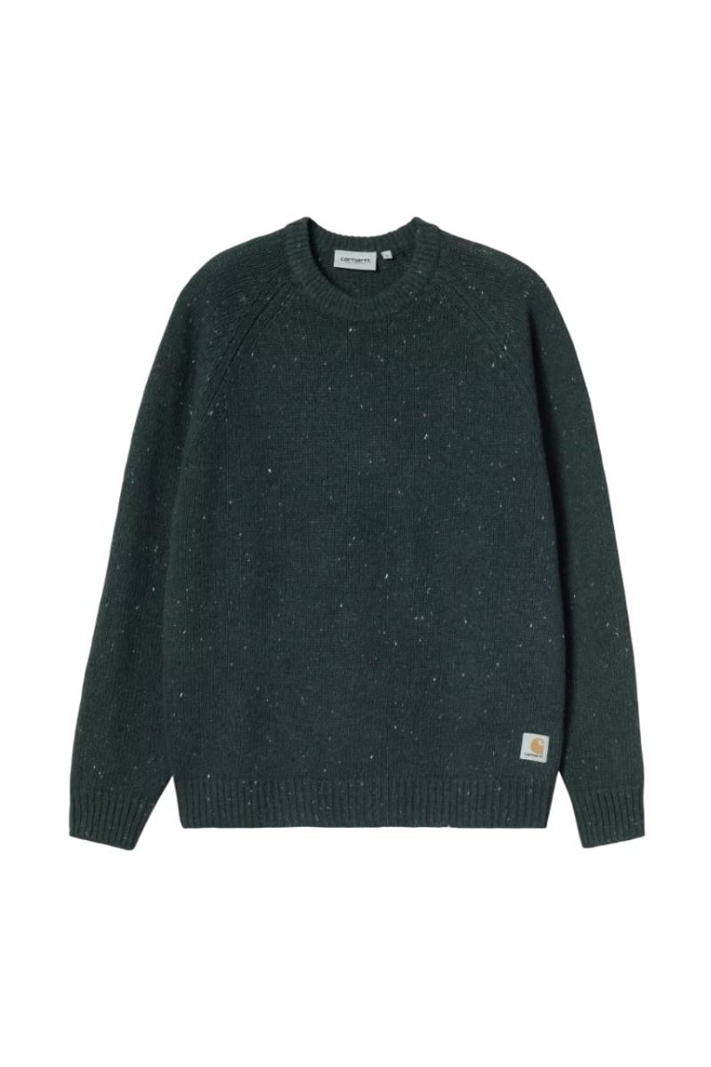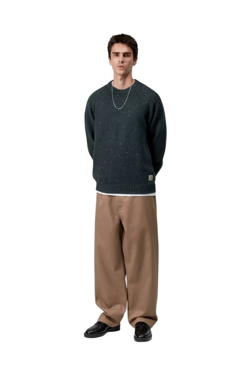 "El Anglistic Sweater es uno de esos jerseys Carhartt que nunca fallan. La mezcla de lana de cordero es abrigada sin ser pesada y el moteado Deep Lagoon luce espectacular en directo. Es un jersey de invierno muy sólido: suave, cálido y con la durabilidad que caracteriza a WIP. Para quien busque un punto premium y versátil, es de nuestras mejores recomendaciones esta temporada."