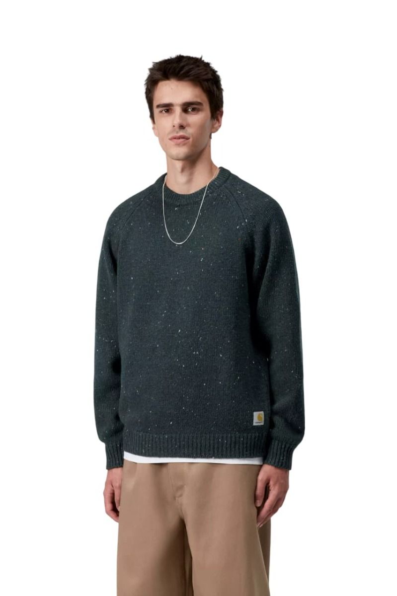 Jersey de lana Carhartt WIP Anglistic Sweater en color azul verdoso moteado para hombre