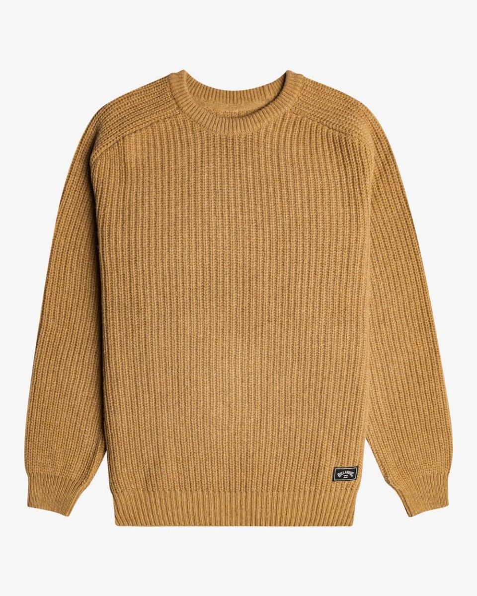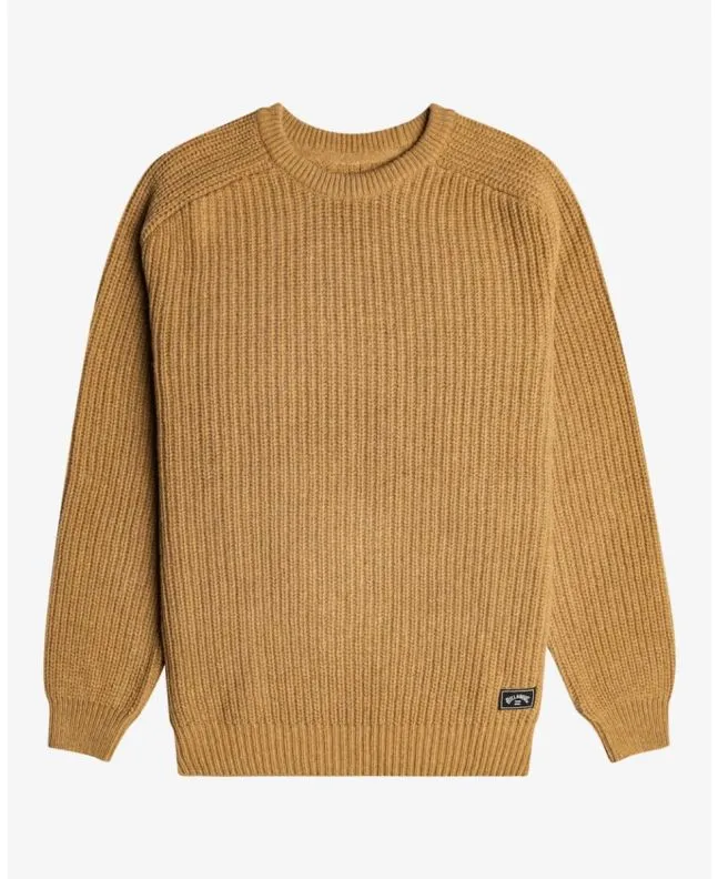 Este suéter eco-friendly de corte normal color marrón cuenta con diseño cerrado, cuello redondo, punto canalé en puños y dobladillo, junto con una etiqueta de Billabong tejida en el dobladillo.