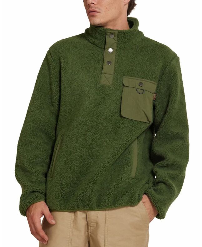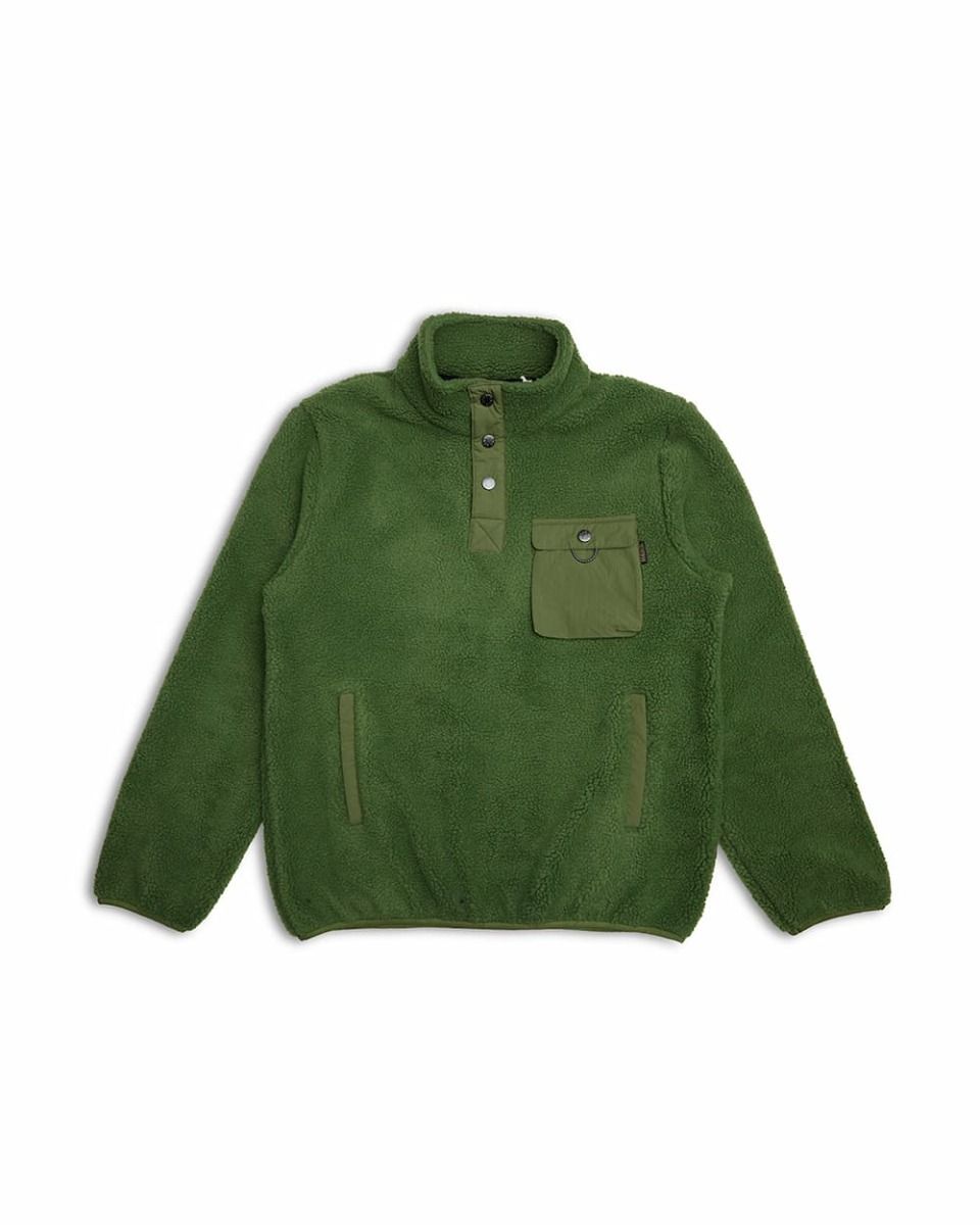 El jersey polar para hombre Reimis Pullover Fleece Verde (Pine) de Deus Ex Machina está confeccionado con cálido tejido de forro polar sherpa.