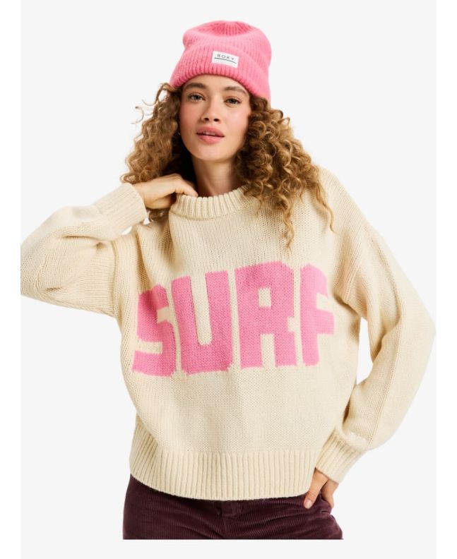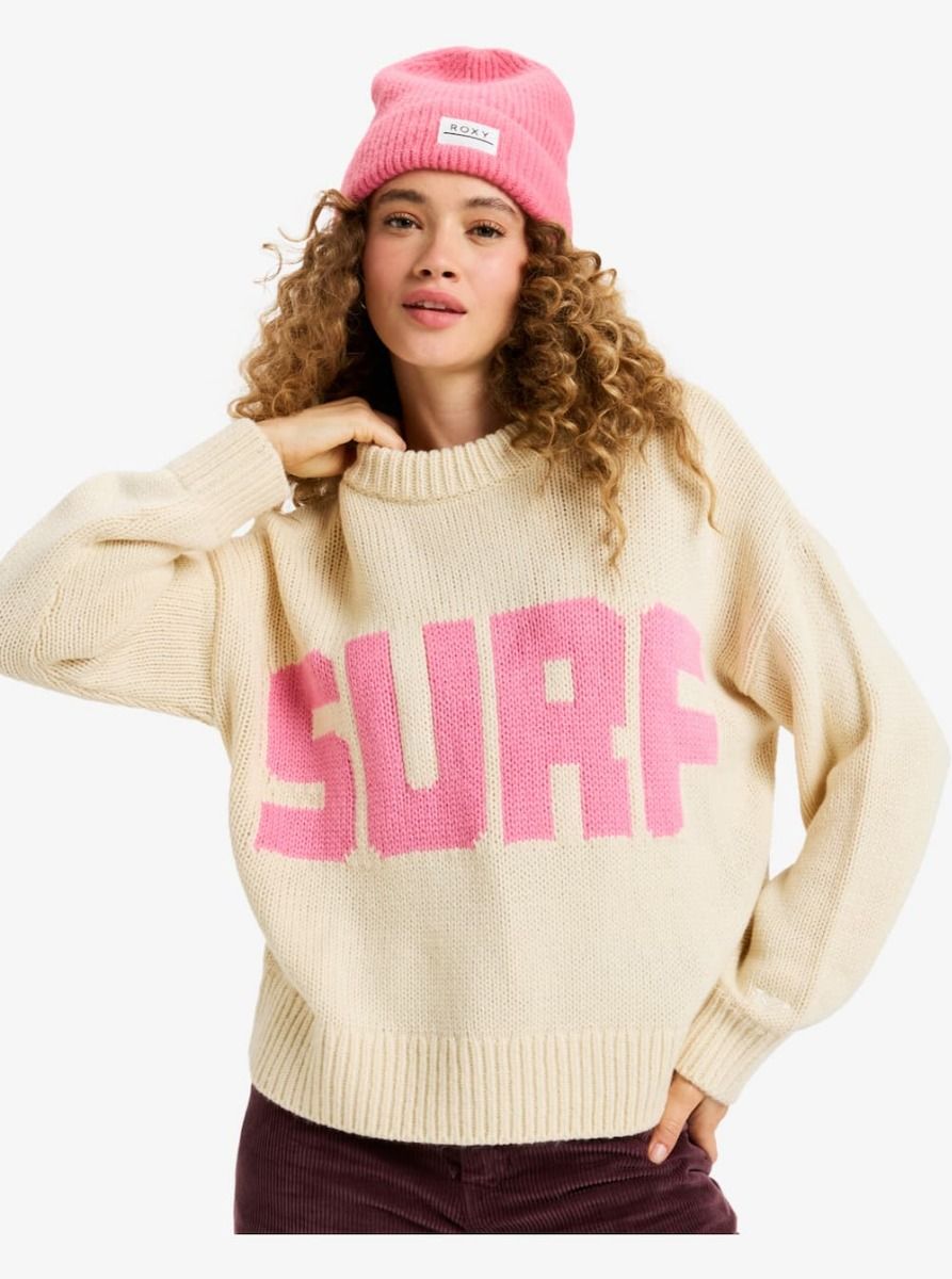 Abrigo y personalidad en un jersey Roxy de punto pesado con gráfico SURF/SNOW y ajuste cómodo.