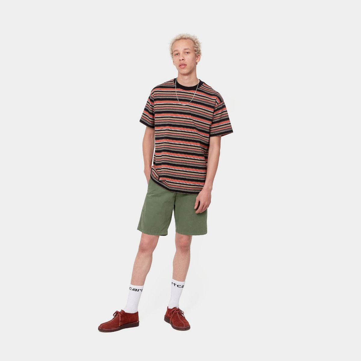 Estas bermudas de ajuste regular y tiro bajo cuentan con bolsillos laterales, costuras bartack en zonas de mayor tensión, cierre de botón, bragueta con cremallera y una etiqueta cuadrada con el logo de Carhartt cosida en la parte posterior.