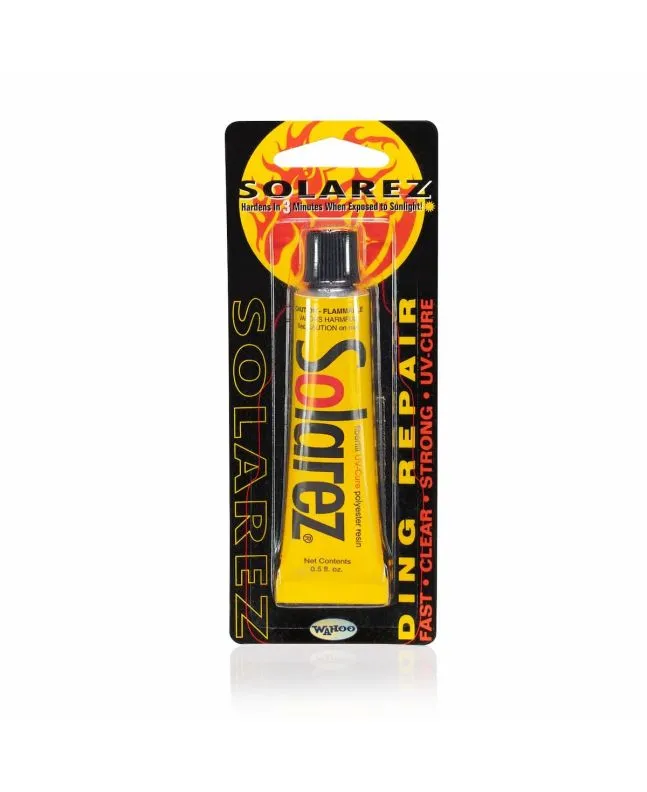 Con este Kit reparador Polyester de Solarez podrás reparar tu tabla de surf de poliéster en tan solo unos minutos, sin necesidad de hacer ninguna mezcla. Es la solución perfecta para las tablas de Polyester con foam de poliuretano. Pero no te compliques: tan solo tendrás que sanear un poco el golpe con la lija que incluye el kit, añadir el líquido reparador de poliéster, dejar secar 3 minutos al sol y … al agua!