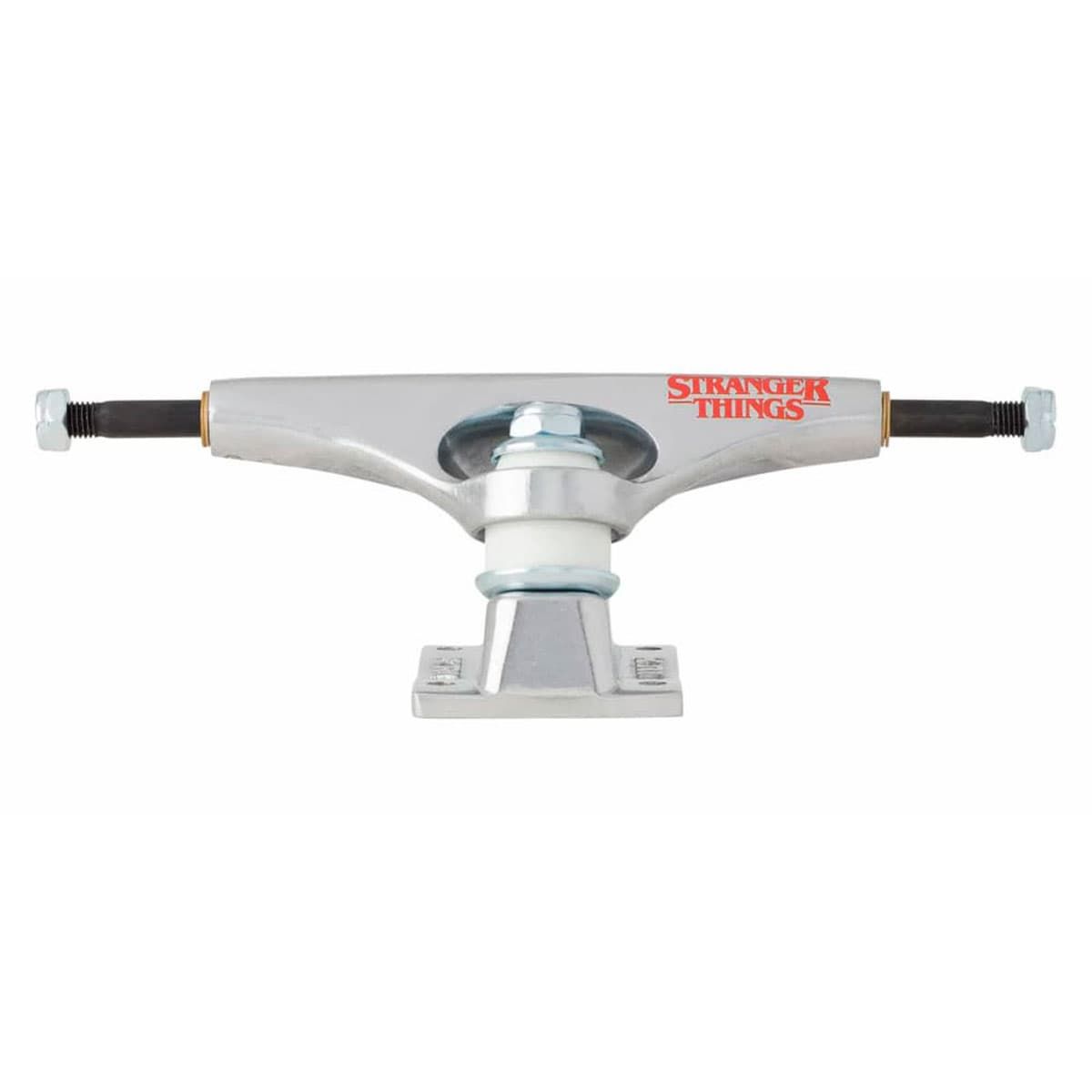 El eje para skateboard K5 Polished Stranger Things Crew Silver Standard 8.25", perteneciente a la "Stranger Things™© Collection" de Krux Trucks, cuenta con un nuevo diseño en el soporte y la placa base, una geometría de giro más rápida, una nueva forma de pivote, copa de pivote moldeada por inyección más duradera, gomas de gran calidad e ilustraciones originales de la serie Stranger Things estampadas.