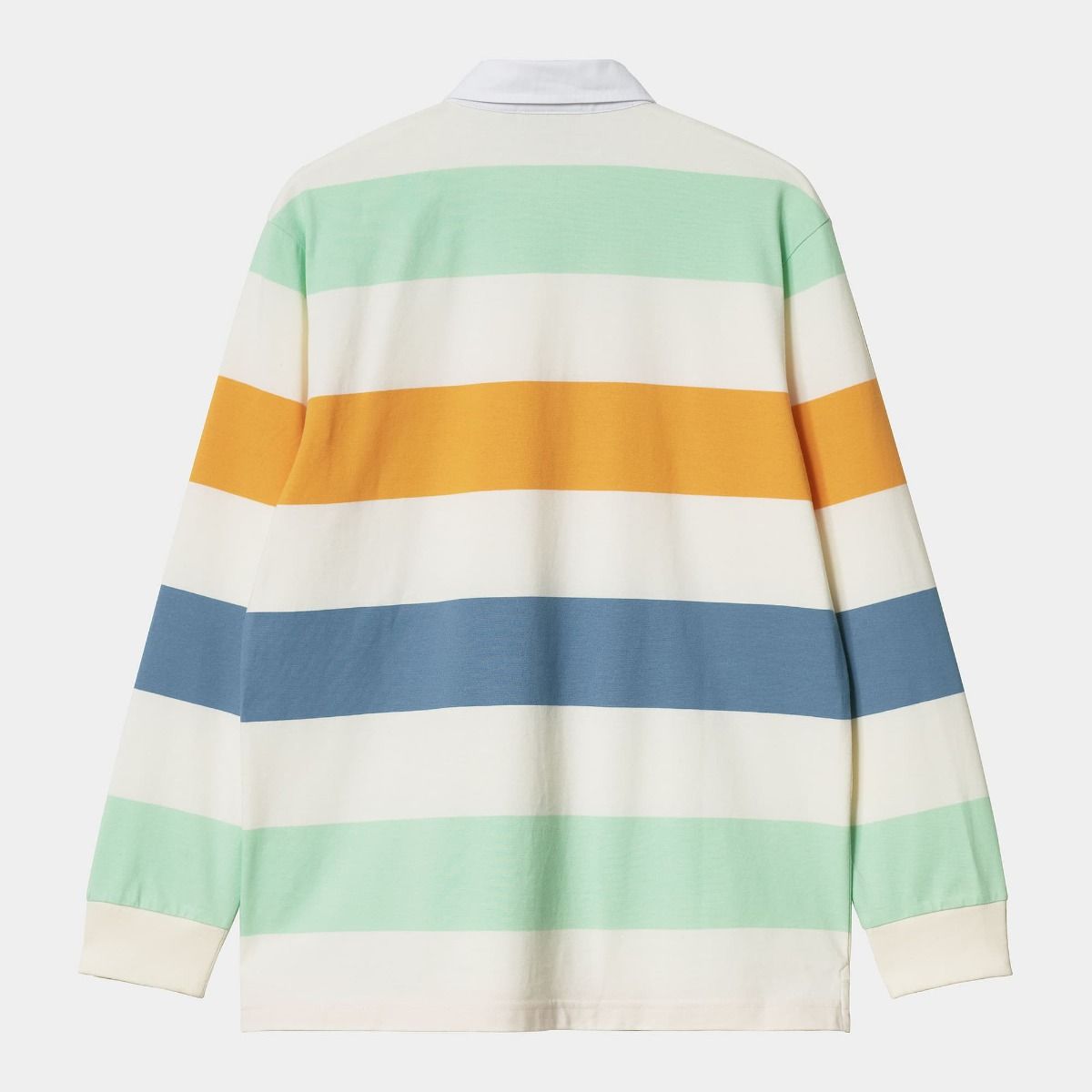 Este polo de corte regular y estampado a rayas cuenta con cuello de sarga, manga larga, puños acanalados y el emblemático logo de la C de Carhartt WIP bordado en contraste en el pecho.