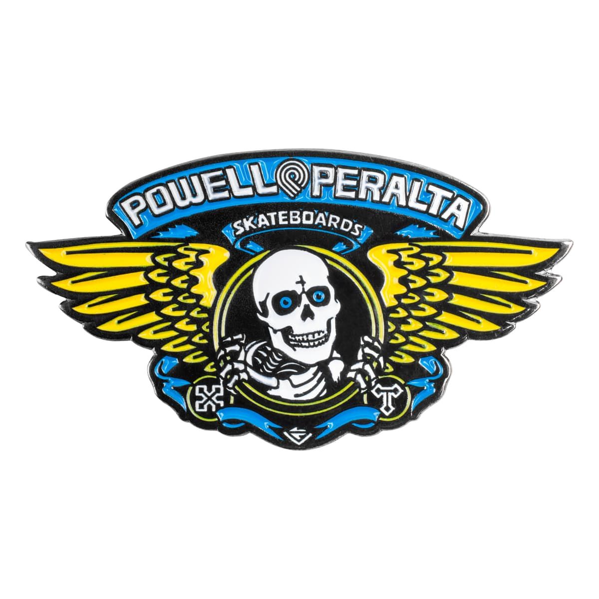 Muestra tu amor por el skateboarding con la Insignia metálica Winged Ripper Azul de Powell Peralta.